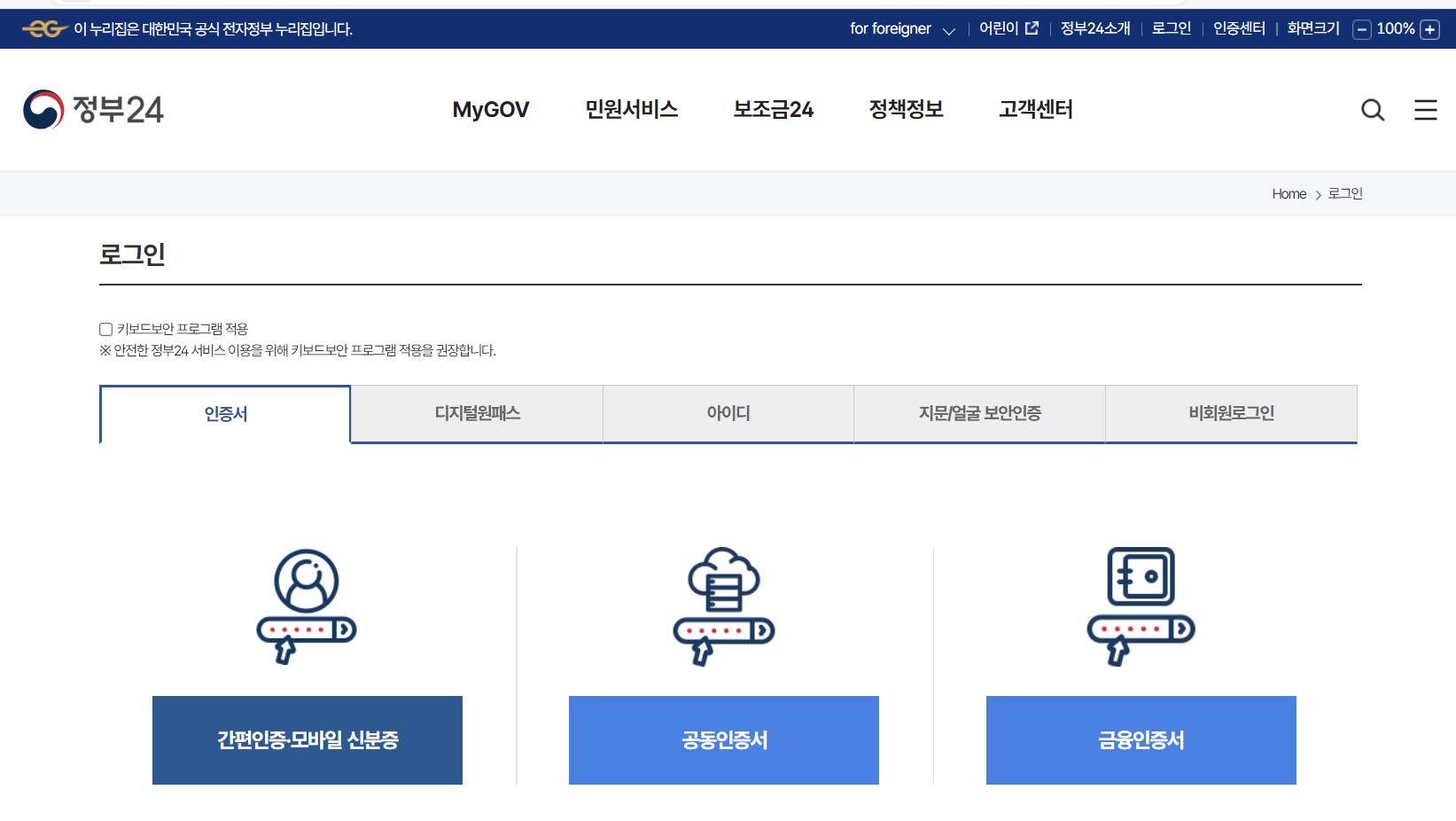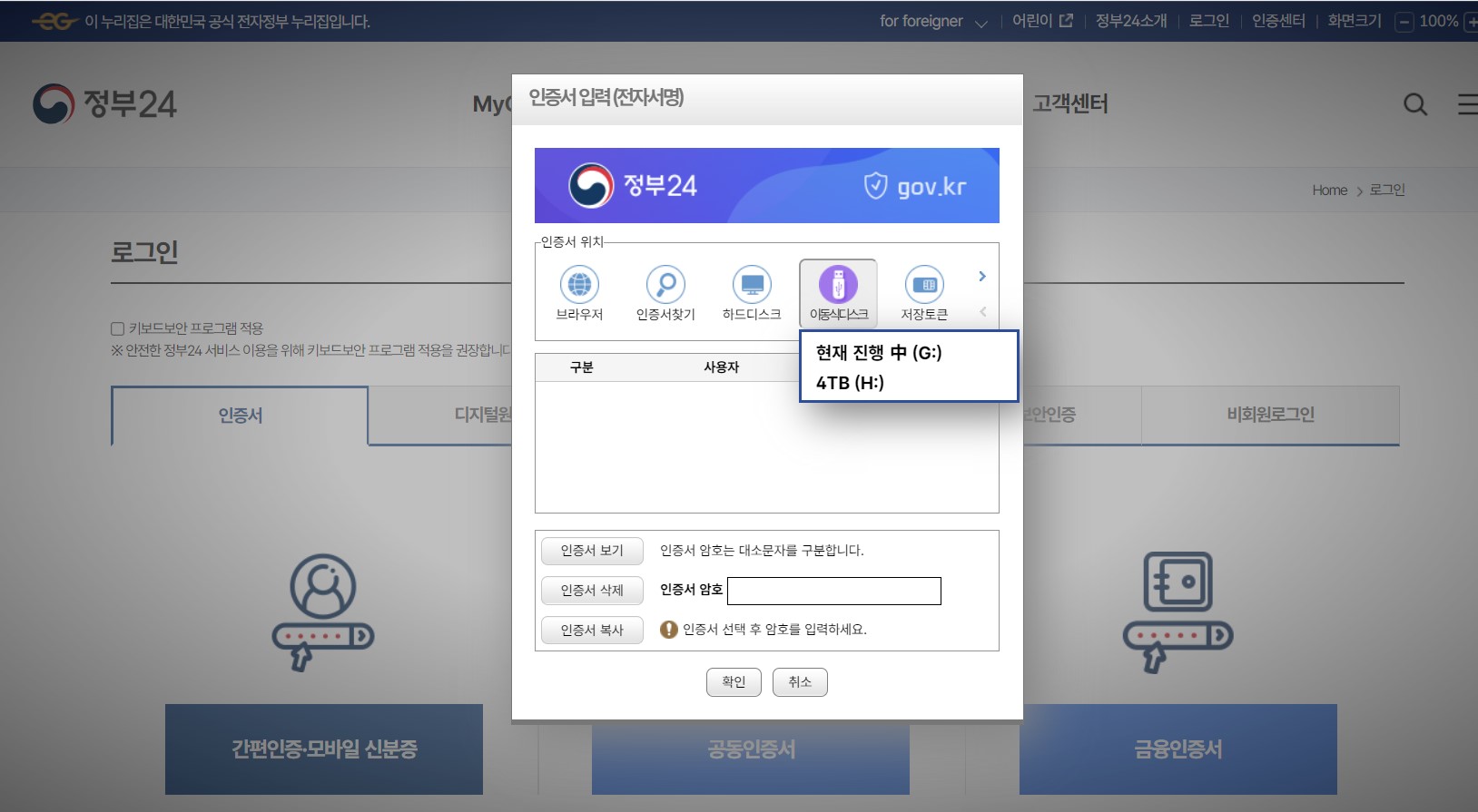 6. 다시 돌아와 자신에게 해당되는 인증서를 선택합니다. 저는 예전부터 <공동인증서>를 사용해 왔기 때문에 선택~