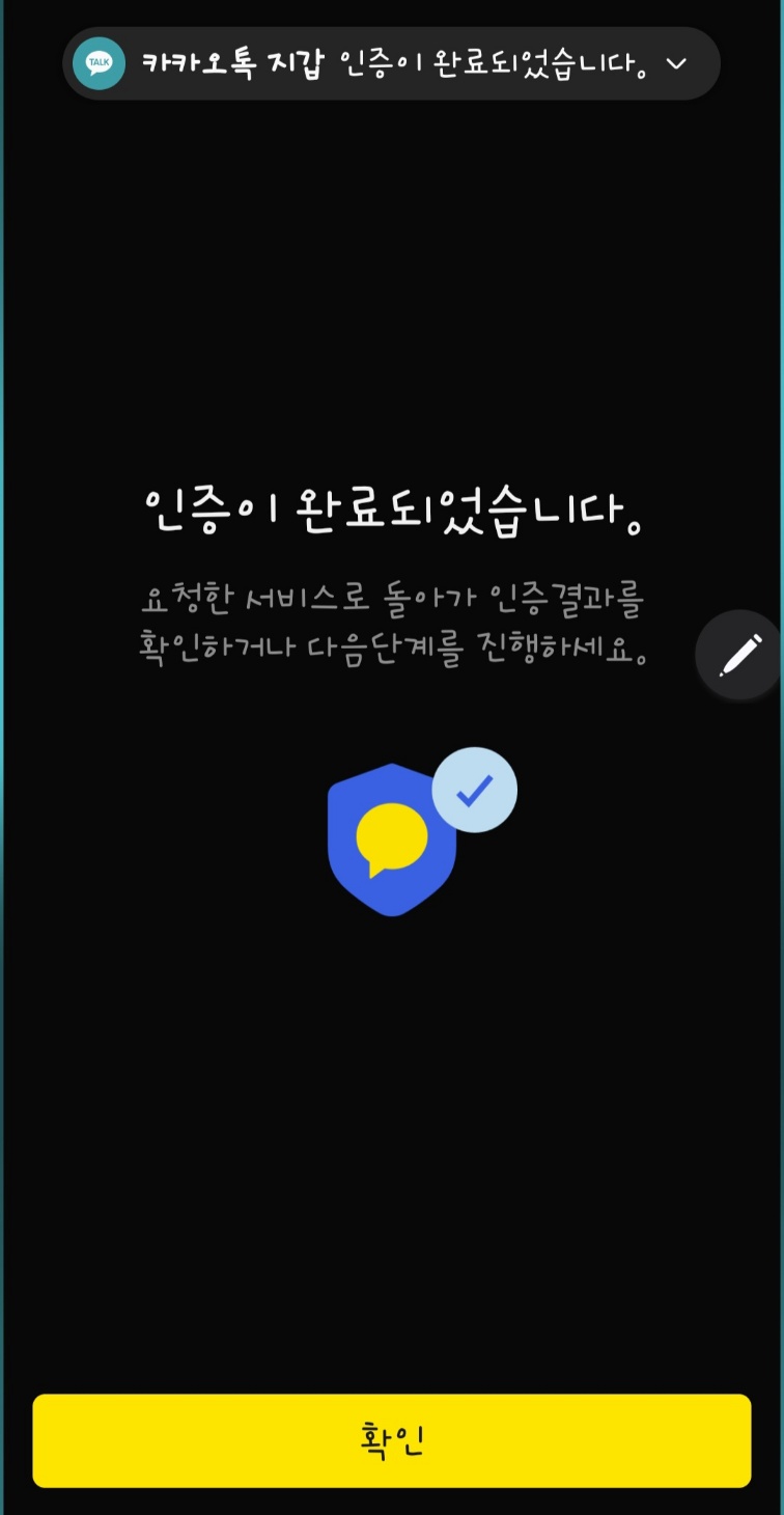 14. 그럼 카카오톡으로 연락이 오는데 순서에 따라 인증을 해 주면 됩니다.