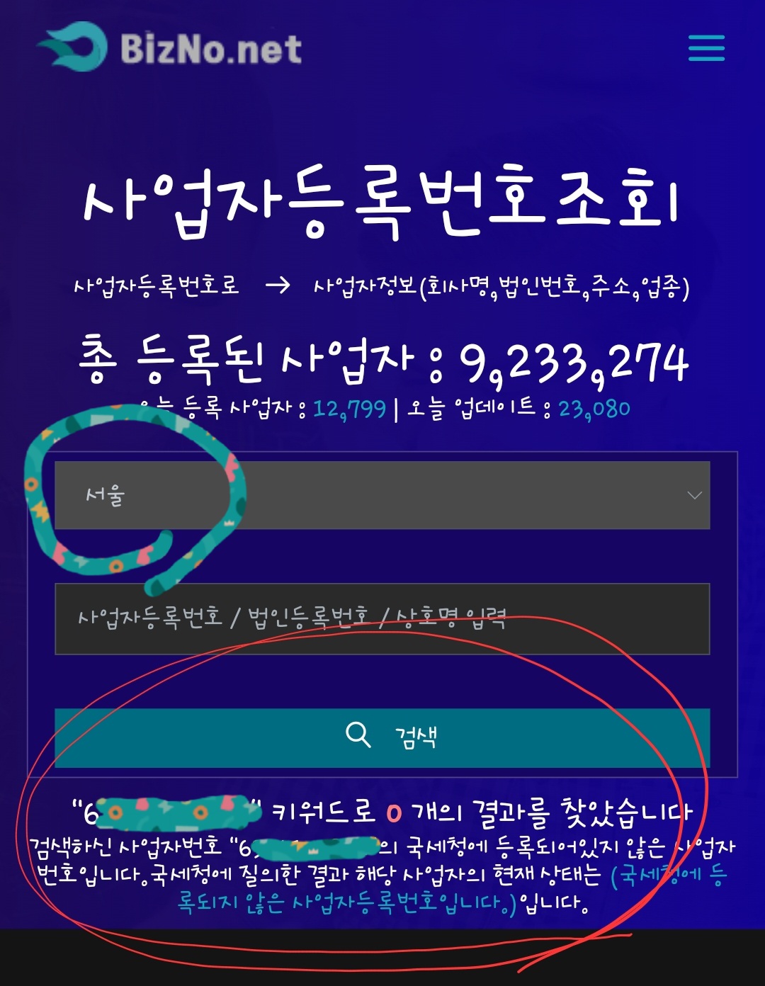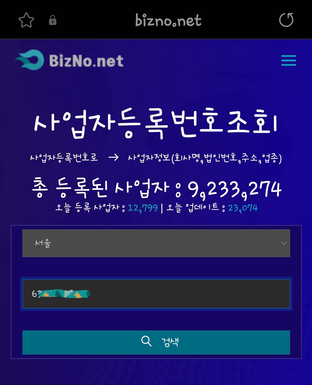 5. 사업자등록번호 조회를 시행합니다.