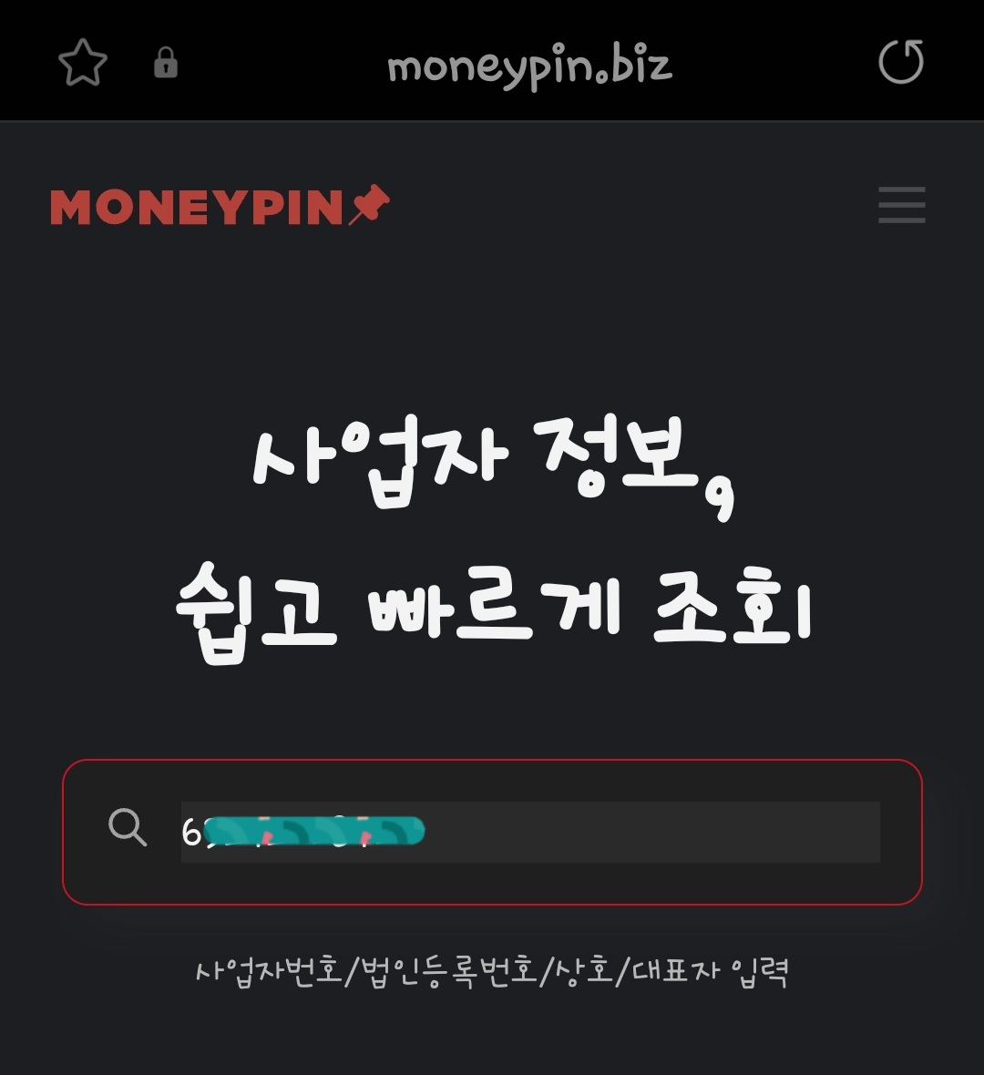 3. 앞에서 찾은 것과 같은 조회 사이트 검색창에 광고하는 업체가 표기한 사업자등록번호를 입력해서 확인할 수 있는데요👌