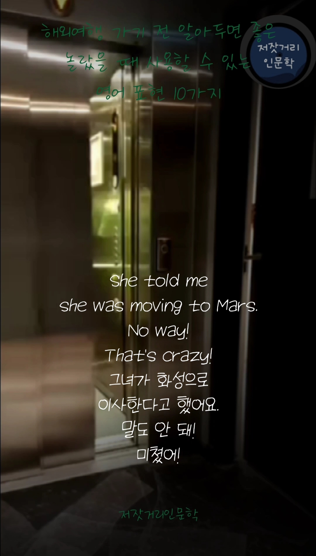 🔺️ She told me she was moving to Mars. No way! That's crazy! (그녀가 화성으로 이사한다고 했어요. 말도 안 돼! 미쳤어!)