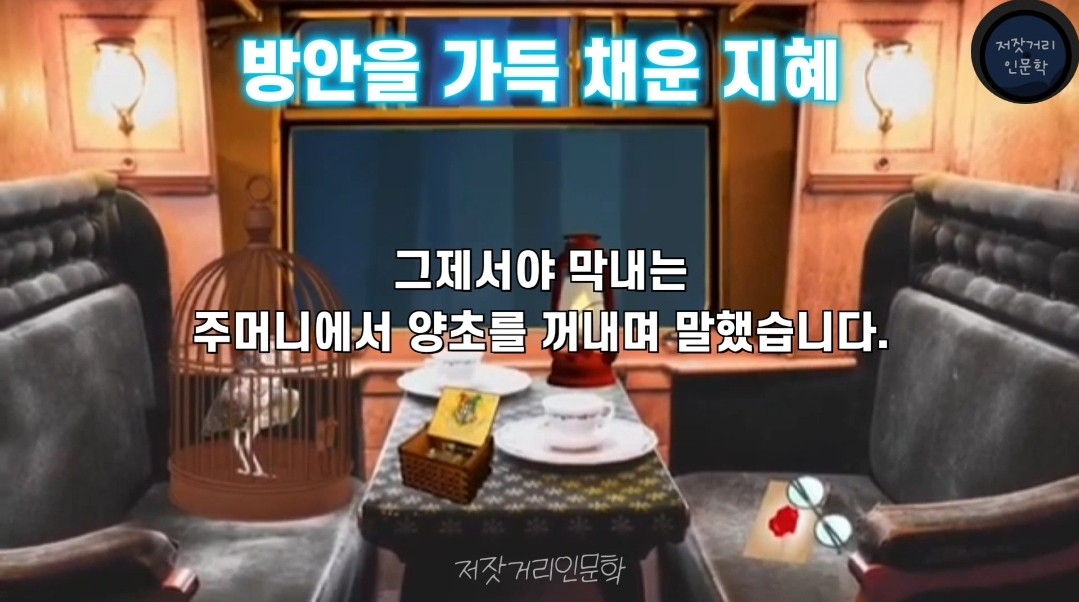 그제서야 막내는 주머니에서 양초를 꺼내며 말했습니다.