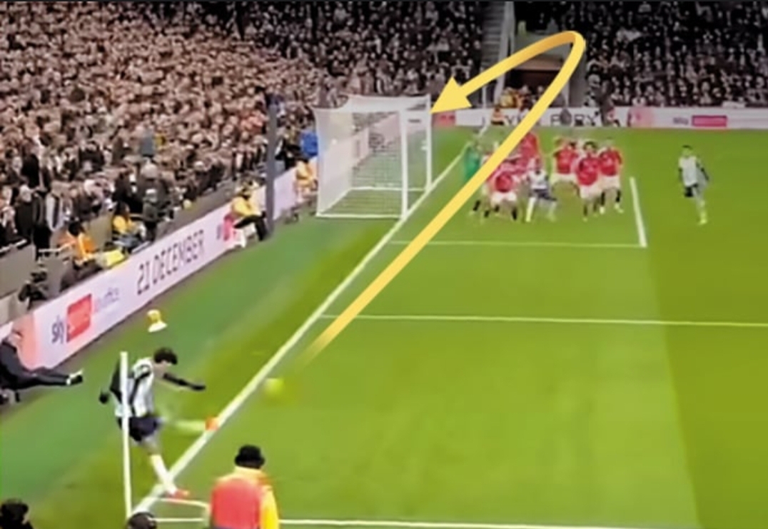 토트넘이 3대2로 앞선 후반 43분 손흥민이 왼쪽 코너킥 상황에서, 손흥민의 오른발을 떠난 공은 크게 휘면서 오른쪽 골문 구석으로 빨려 들어갔다.