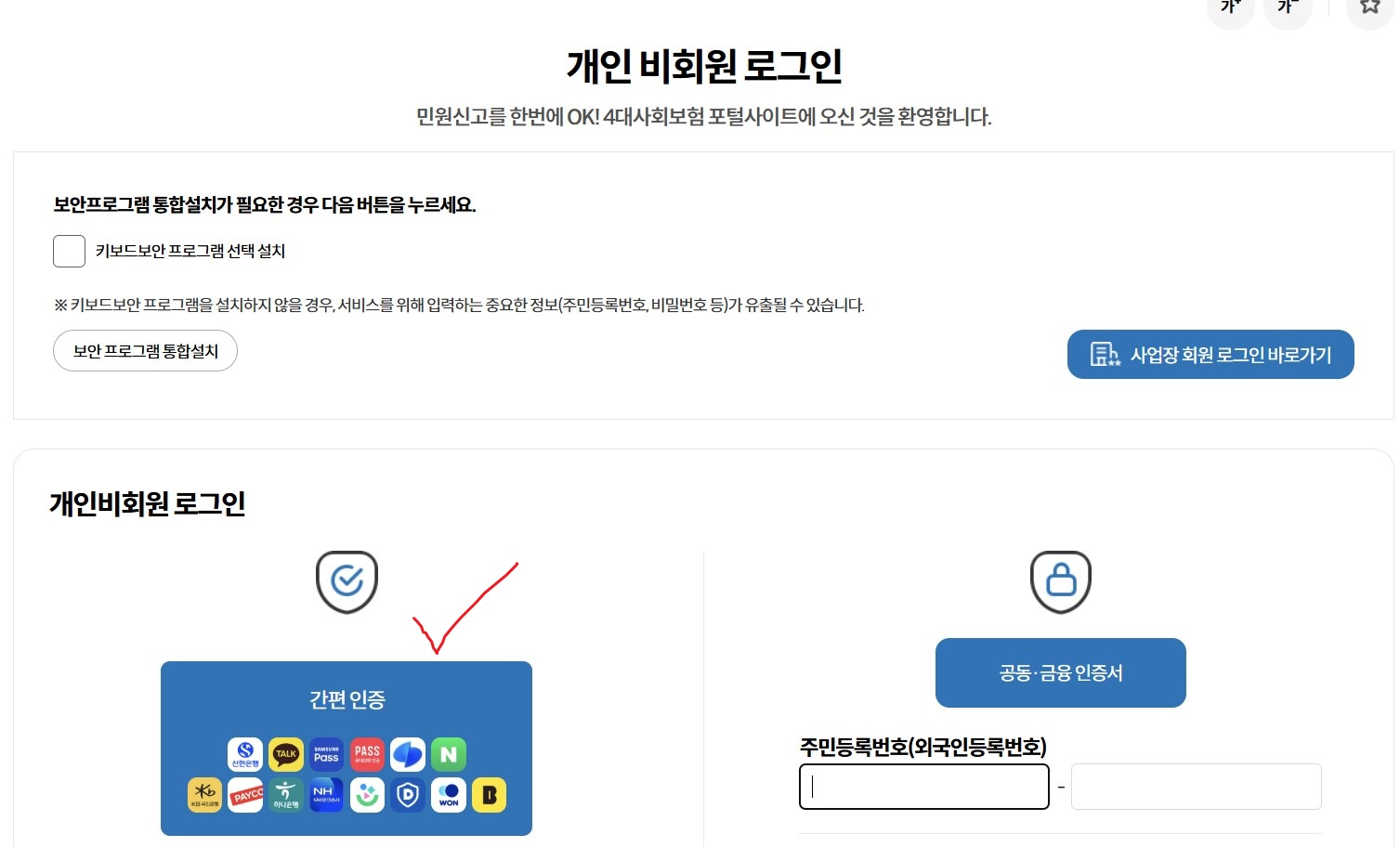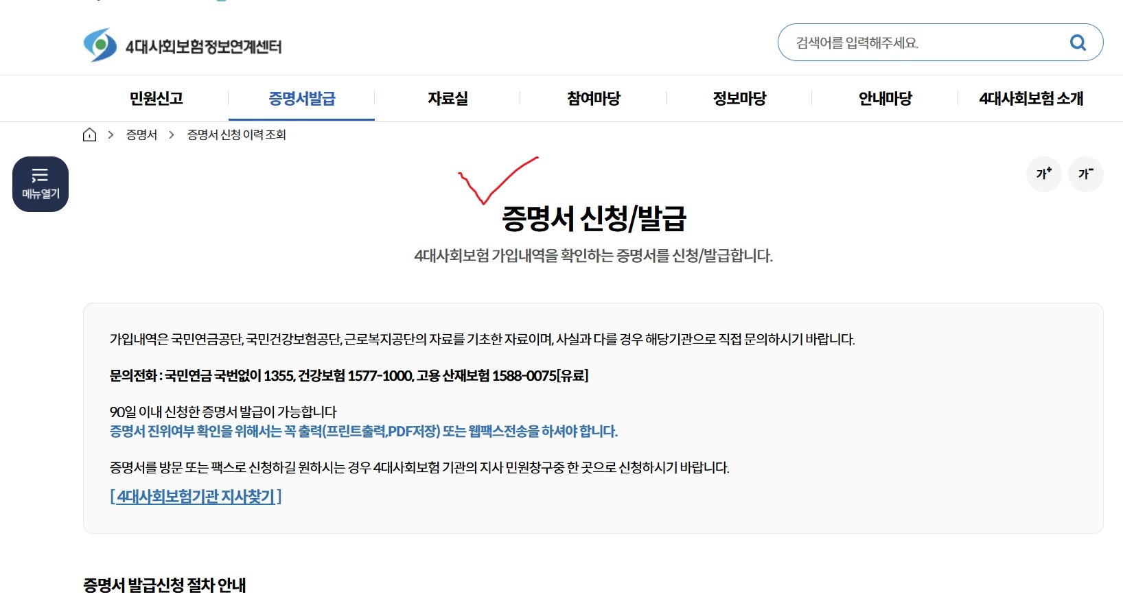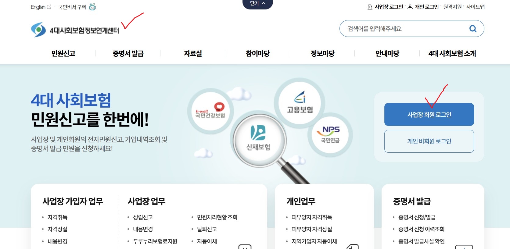 1. 우선 검색창에 <4대사회보험정보연계센터>를 찾아 입장합니다