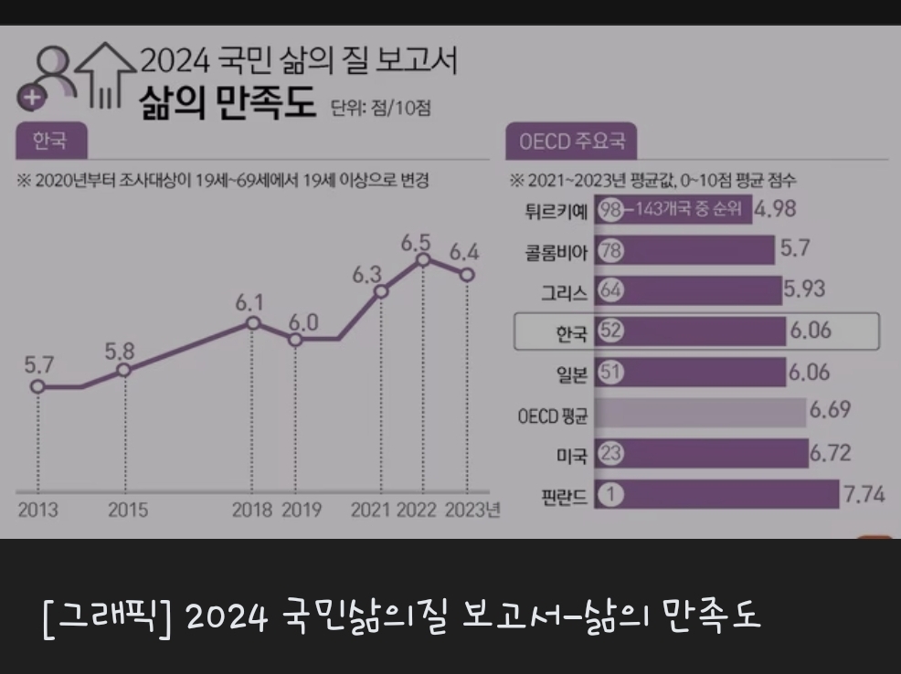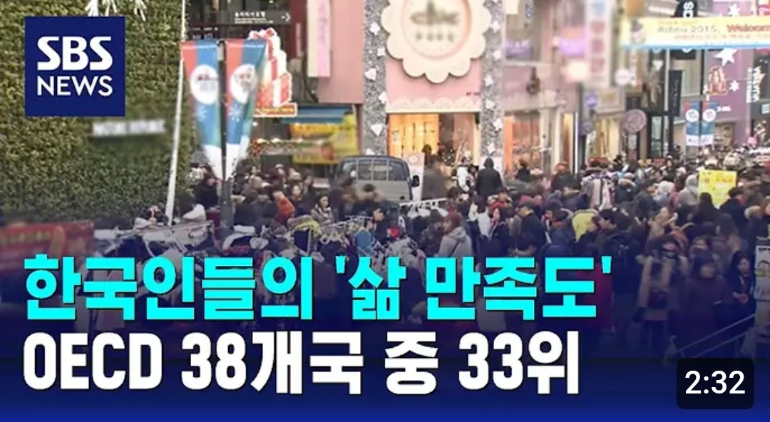 한국인 '삶의 만족도' 악화...OECD 38개국 중 33위 최하위권 2025.02.24