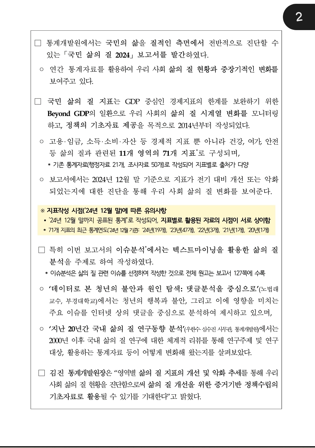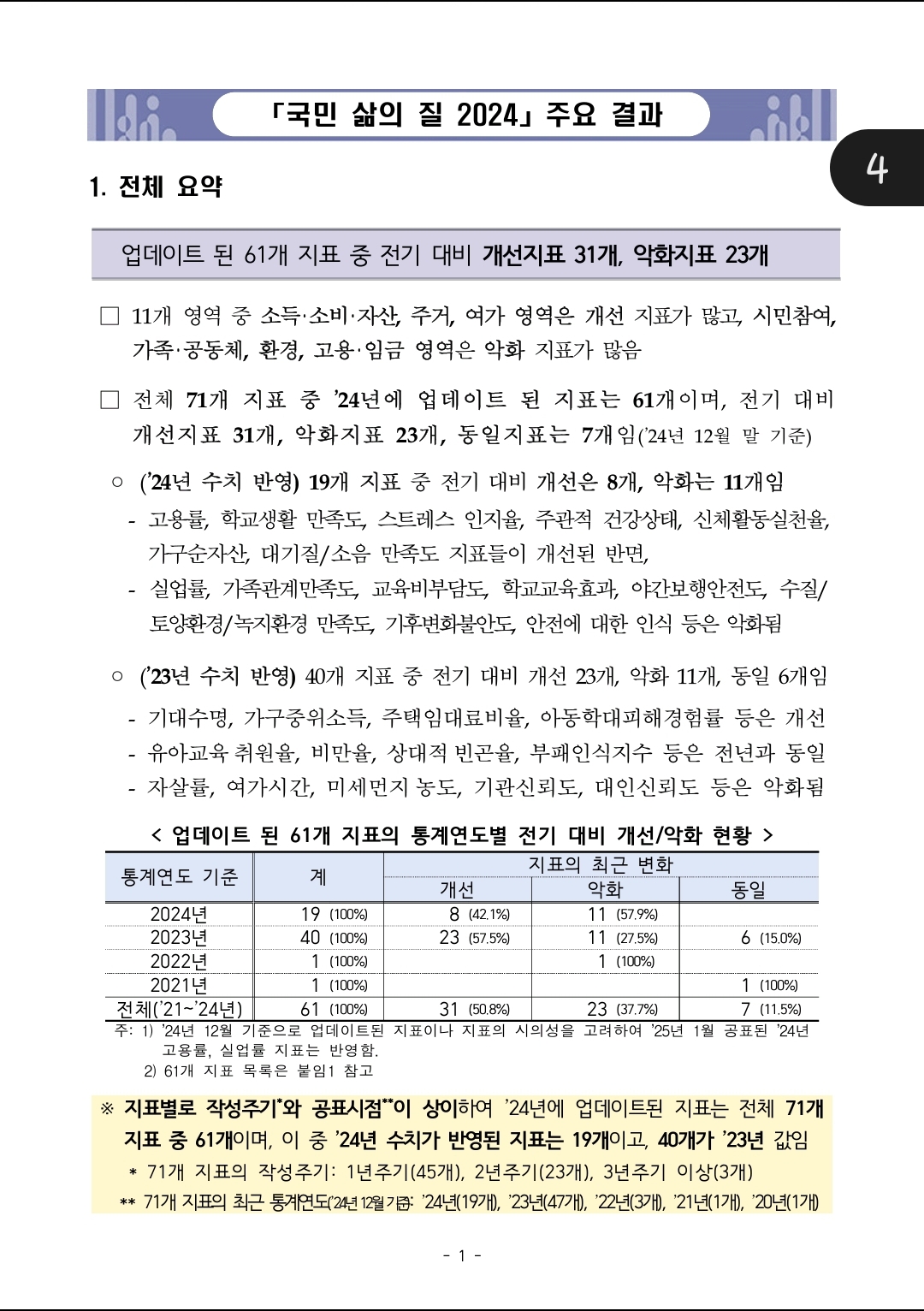 💢《통계청 - 국민 삶의 질 2024》💢
