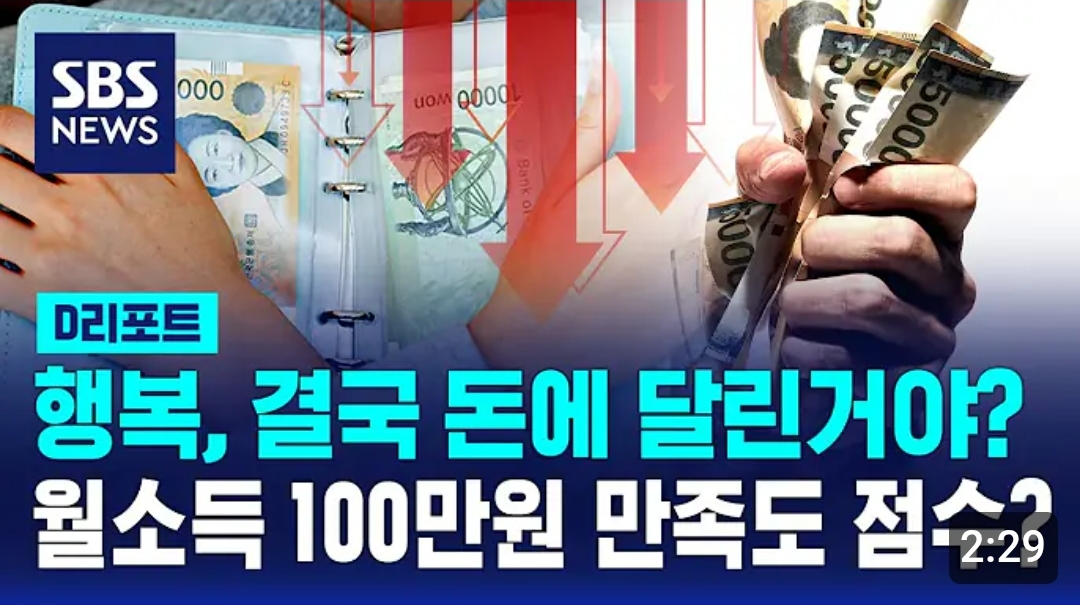 행복, 결국 돈에 달렸다?…한국인 '삶의 만족도' 또 하락 / SBS / #D리포트 2025.02.24