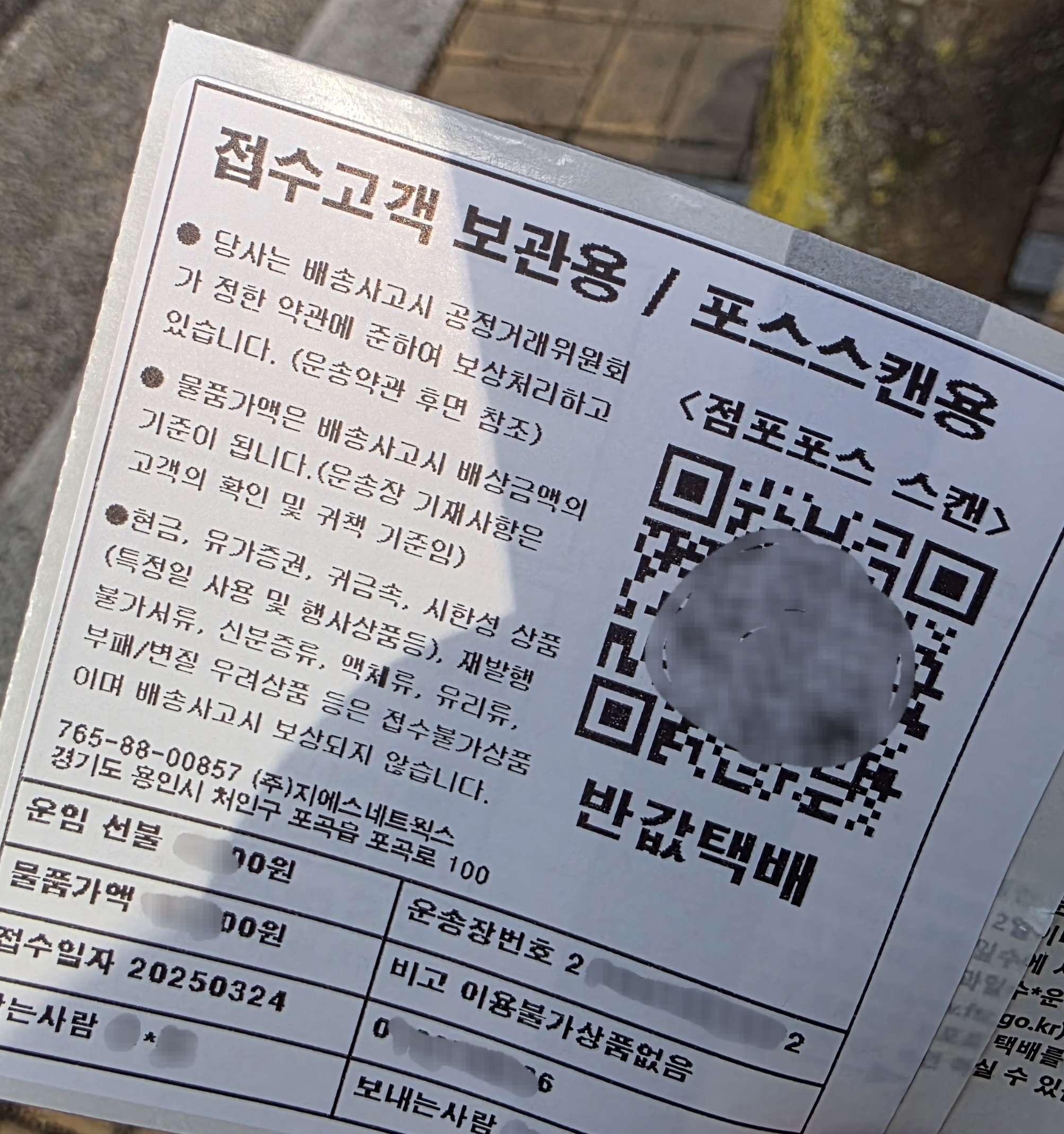 5. 스티커 영수증을 택배에 붙이고 카운터로 가서 근무자에게 접수하면 되는데(모르면 알바생에게 물어보면 됨), 영수증을 주니 챙기시길 바랍니다.