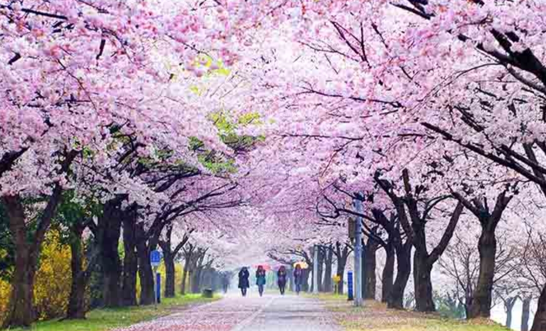 * 끝없이 이어지는 벚꽃 터널이 환상적인 분위기를 자아냅니다.