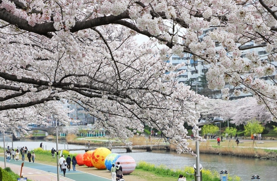 * 강변을 따라 펼쳐지는 벚꽃 풍경이 장관을 이룹니다.