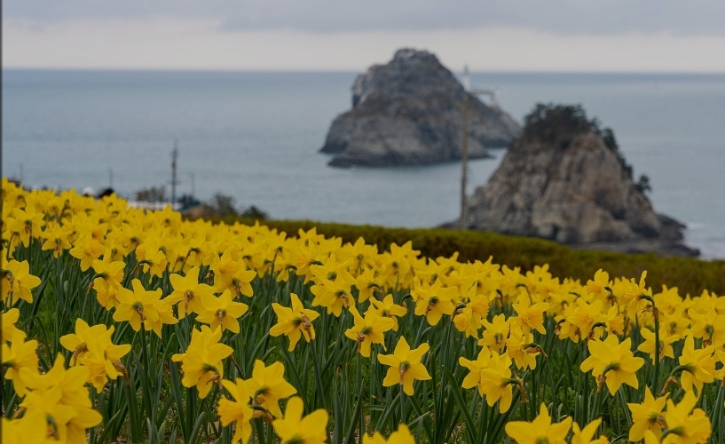 * 수선화와 유채꽃이 바다를 배경으로 피어나는 독특한 풍경을 감상할 수 있습니다.