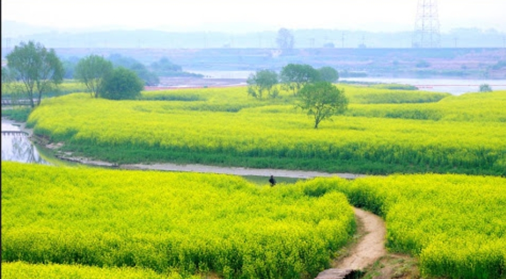 * 넓은 유채꽃밭이 펼쳐져 노란 물결을 이루는 장관을 연출합니다.