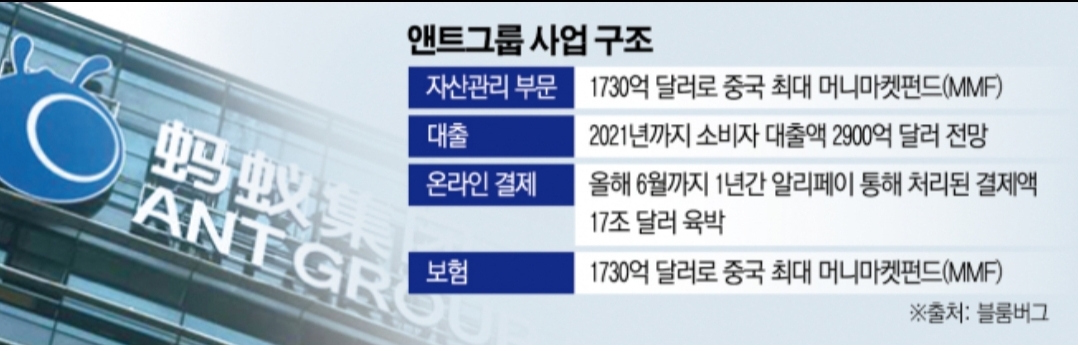 은행과 같은 규제 받는 지주회사로 전환 검토 들어가 결제ㆍ자산관리·신용대출·보험 등 지주사 포함…성장 악영향 앤트 기업가치, 반 토막 날 수도▲마