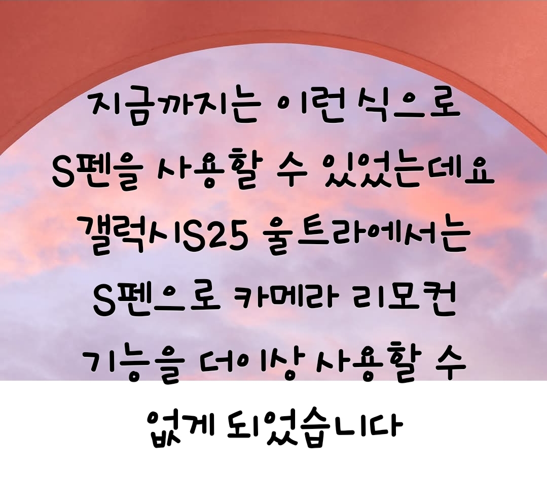 하지만 갤럭시S25 울트라에서는 S펜으로 카메라 리모컨 기능을 더이상 사용할 수 없게 되었습니다.