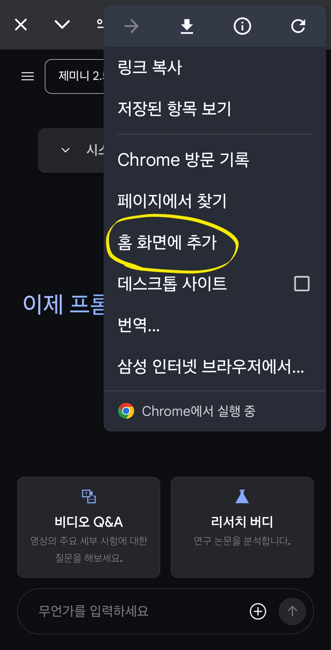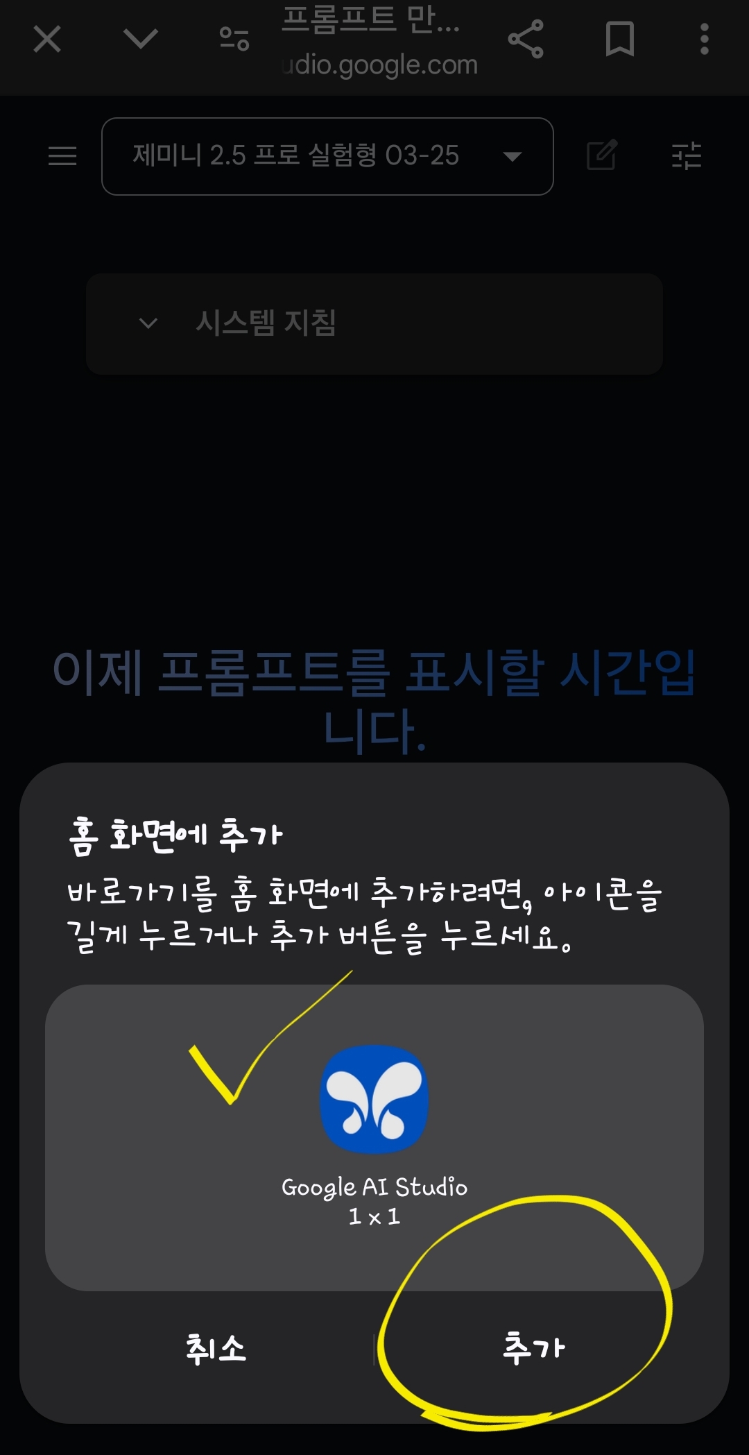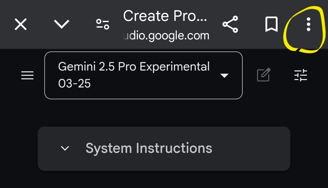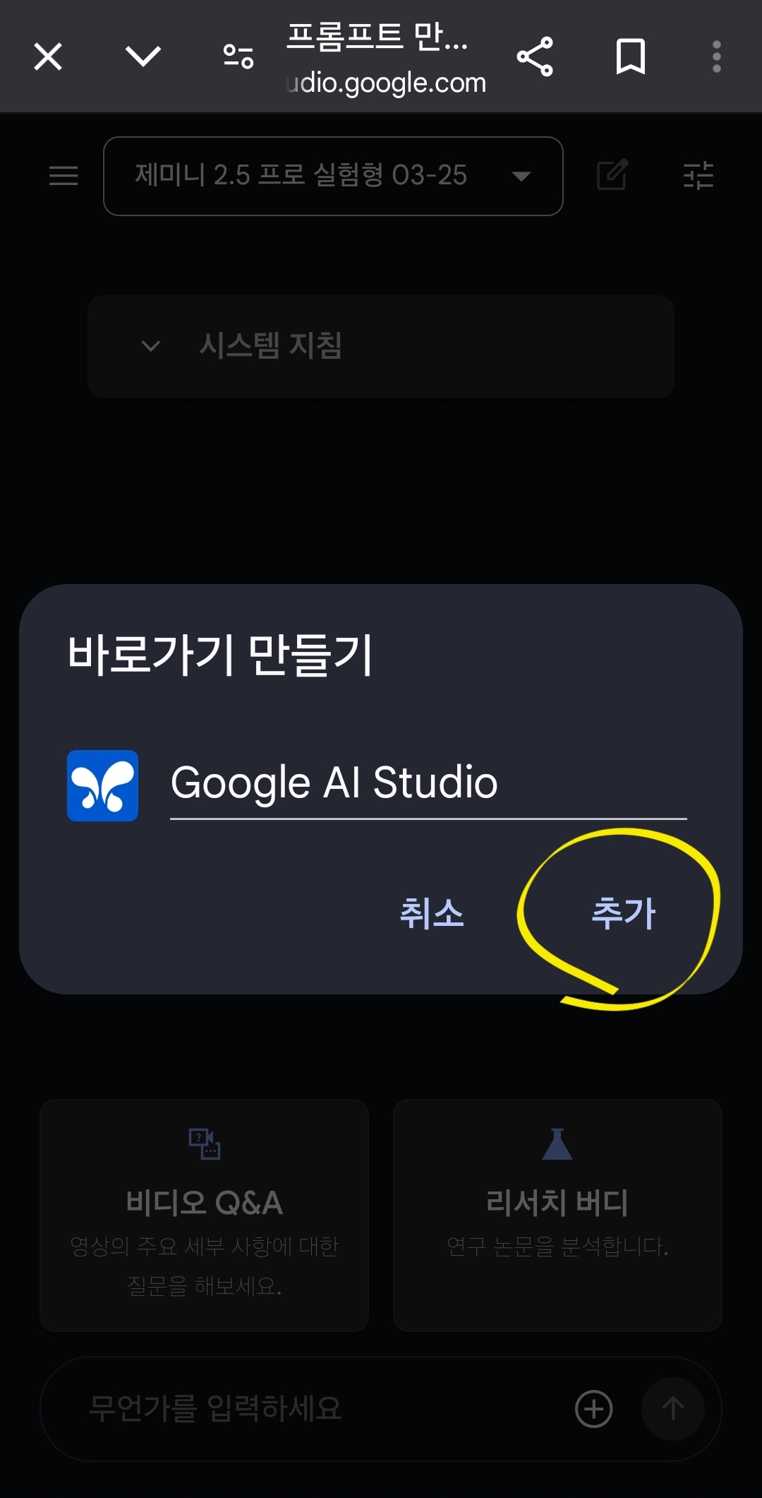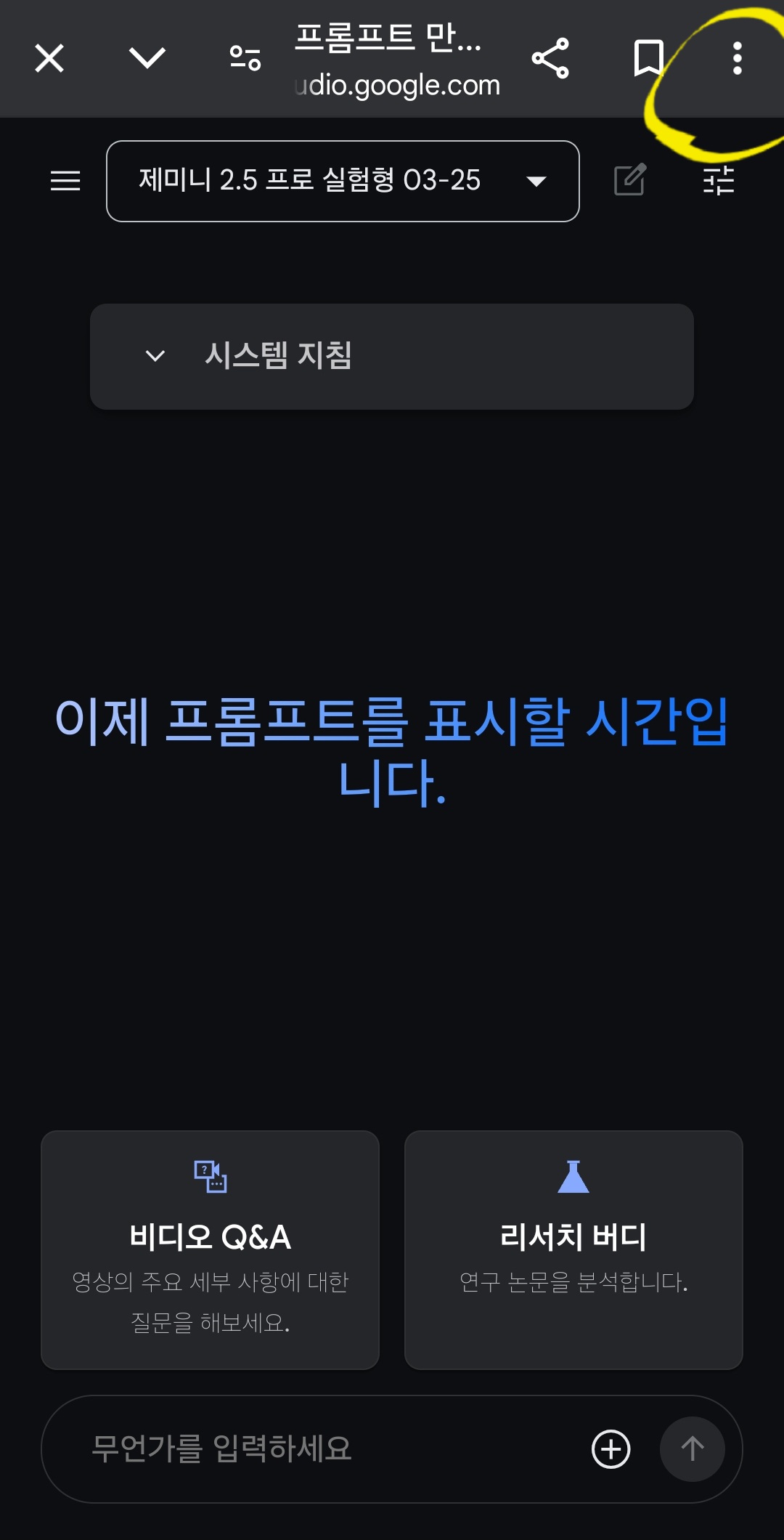 8. 구글 ai 스튜디오를 어플처럼 스마트폰 바탕화면에 깔려면, 오른쪽 위에 있는 점3개 클릭.