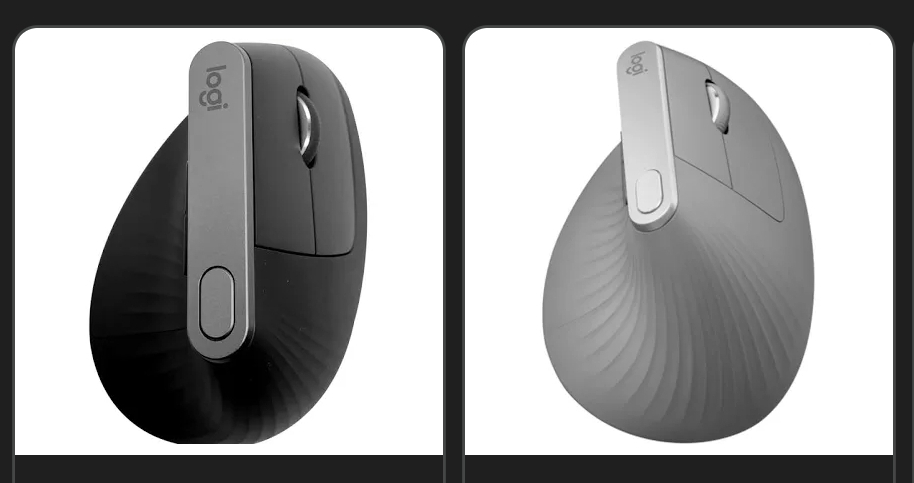 - 로지텍 리프트 마우스는 그래파이트(블랙), 페일그레이(화이트), 로즈핑크(핑크) 세 가지 색상이 있다.