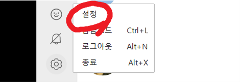 2. 카카오콕 화면 왼쪽 아래로 가서 톱니바퀴를 눌러 줍니다.