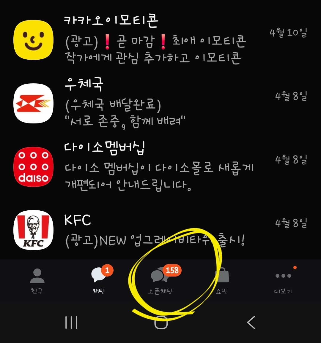 그중에서 시도 때도 없이 올라오는 오픈채팅방 때문에 골치가 아프시다면 이렇게 해보시길 바랍니다.