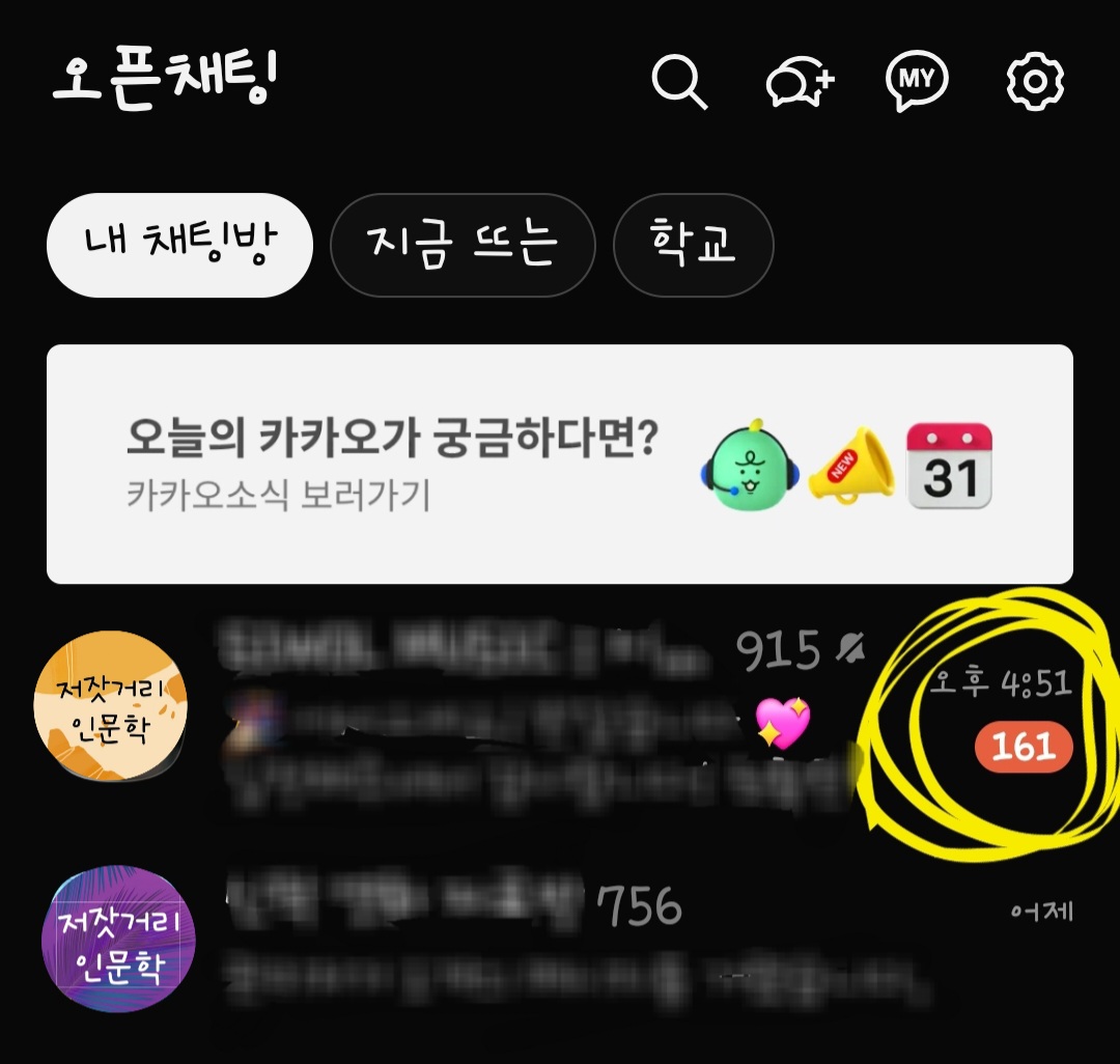 1. 카톡에서 알림을 끄고 싶은 오픈채팅방으로 들어 갑니다.