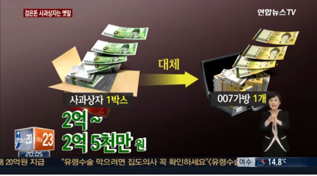 20㎏ 사과상자에는 통상 5만원권이 10억~12억원 들어간다고 합니다...만 그만큼의 현금을 받아본 적이 없어서😅