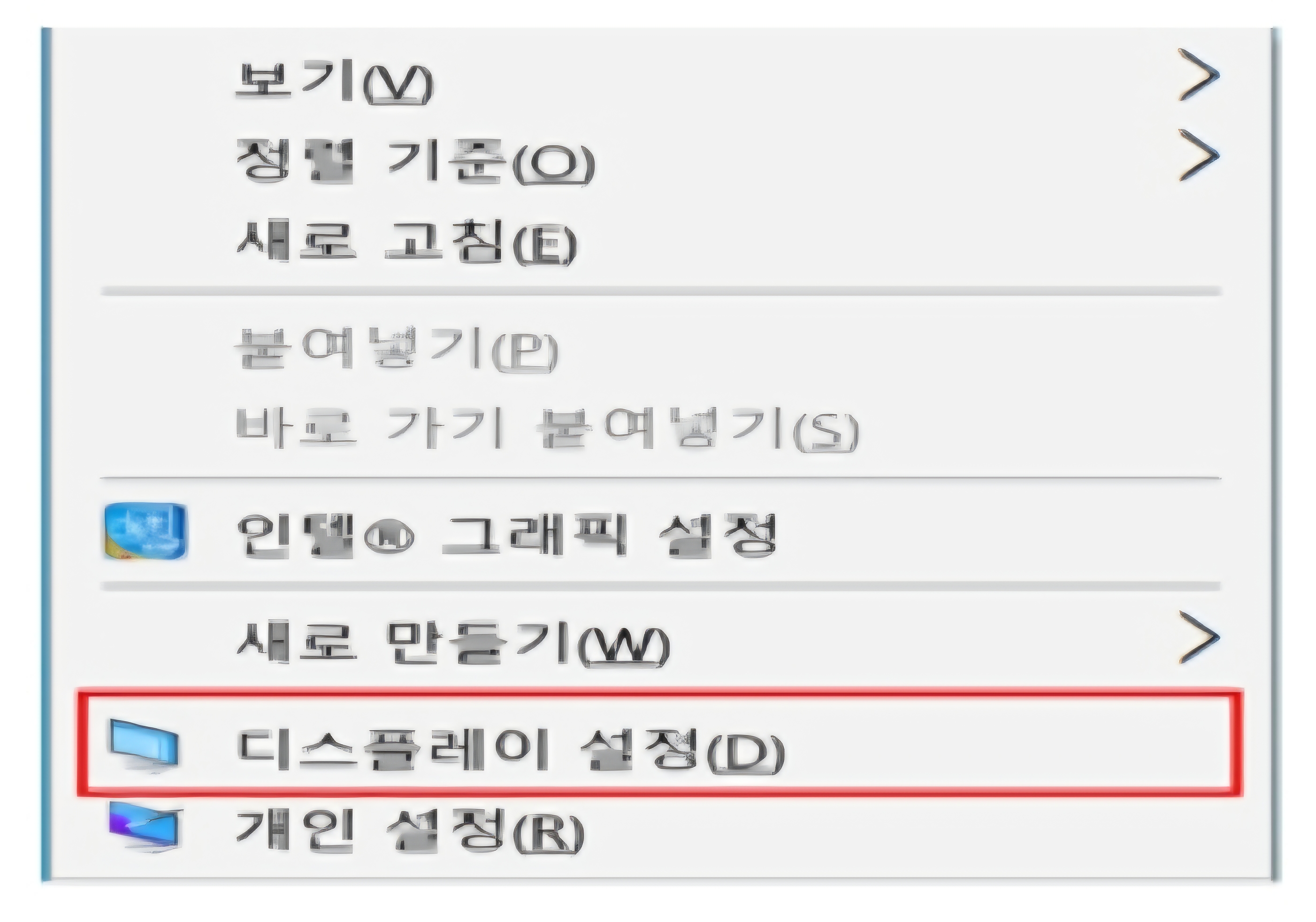 1) 바탕화면에 마우스 오른쪽 버튼을 눌러 → '디스플레이 설정'을 클릭하세요.