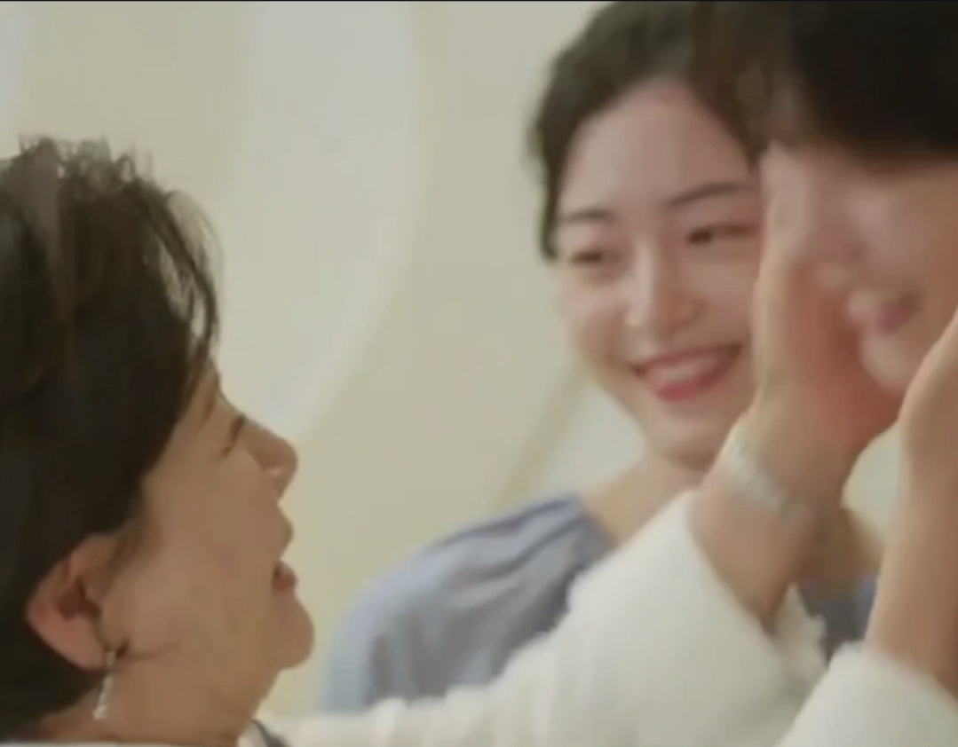 긴장감이 맴도는 그 순간, 아이들이 등장하고, 장모님의 시선은 단번에 아이들로 향합니다.