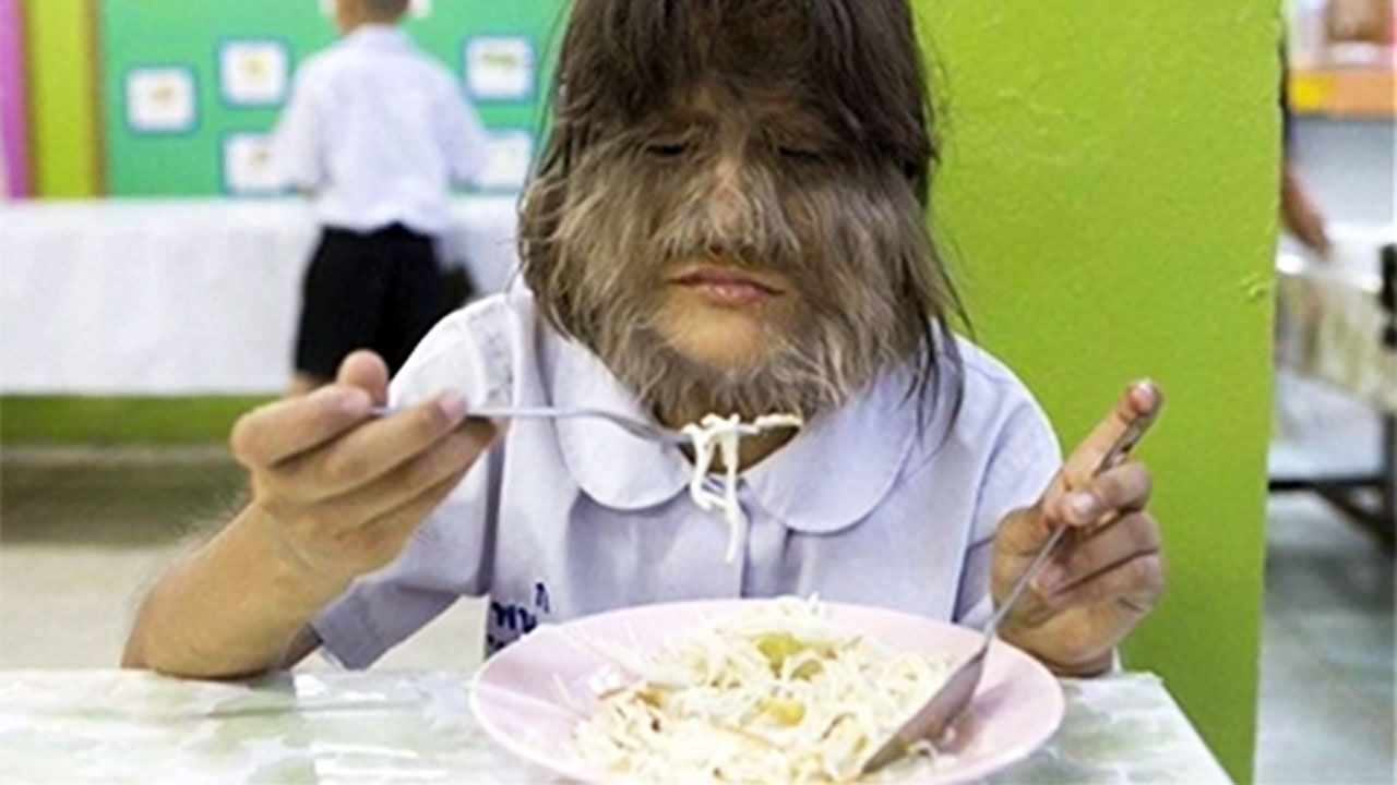 얼굴은 물론 온몸에 털이 수북한 일명 ‘늑대 소녀’가 화제를 모으고 있다. 온몸을 휘감은 갈색 털로 ‘늑대 소녀’란 별명을 갖게 된 주인공은 태국 프라나콤에 사는 초등학생 수파트라 사수