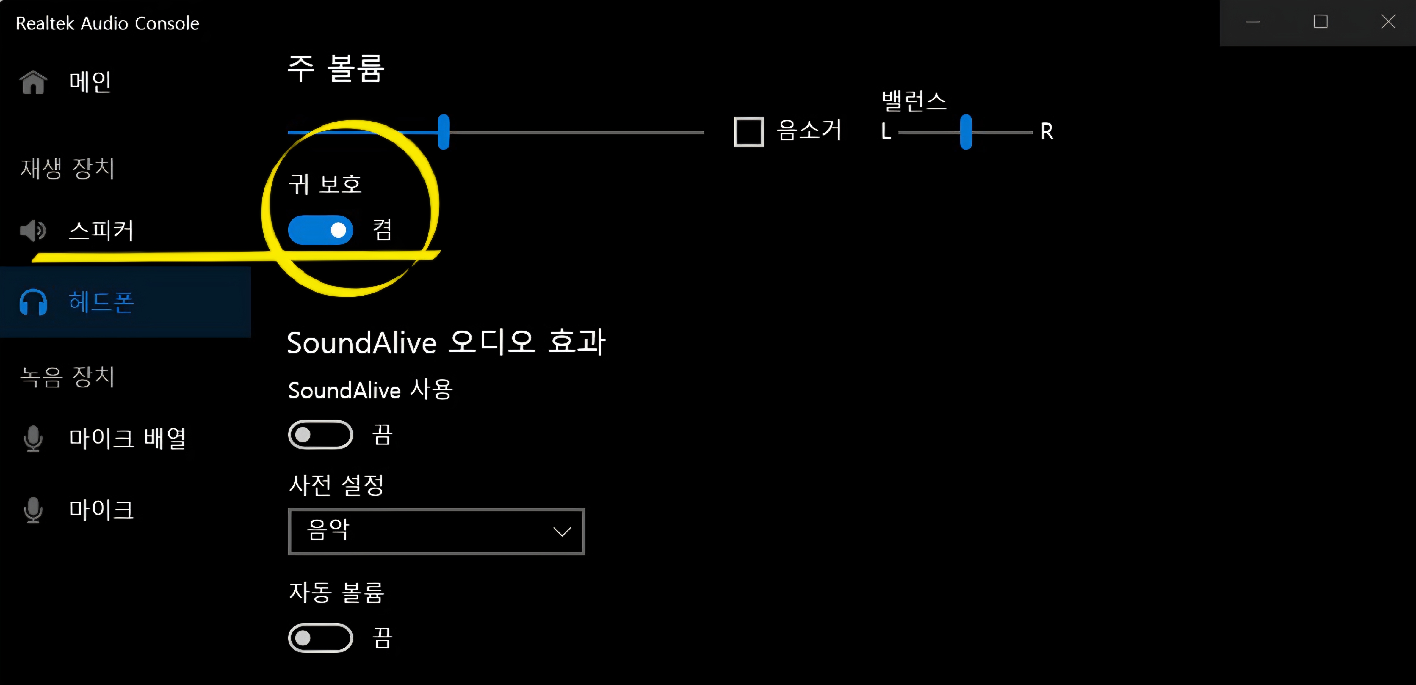 5. 스피커 귀 보호에서 동그라미 부근으로 가서