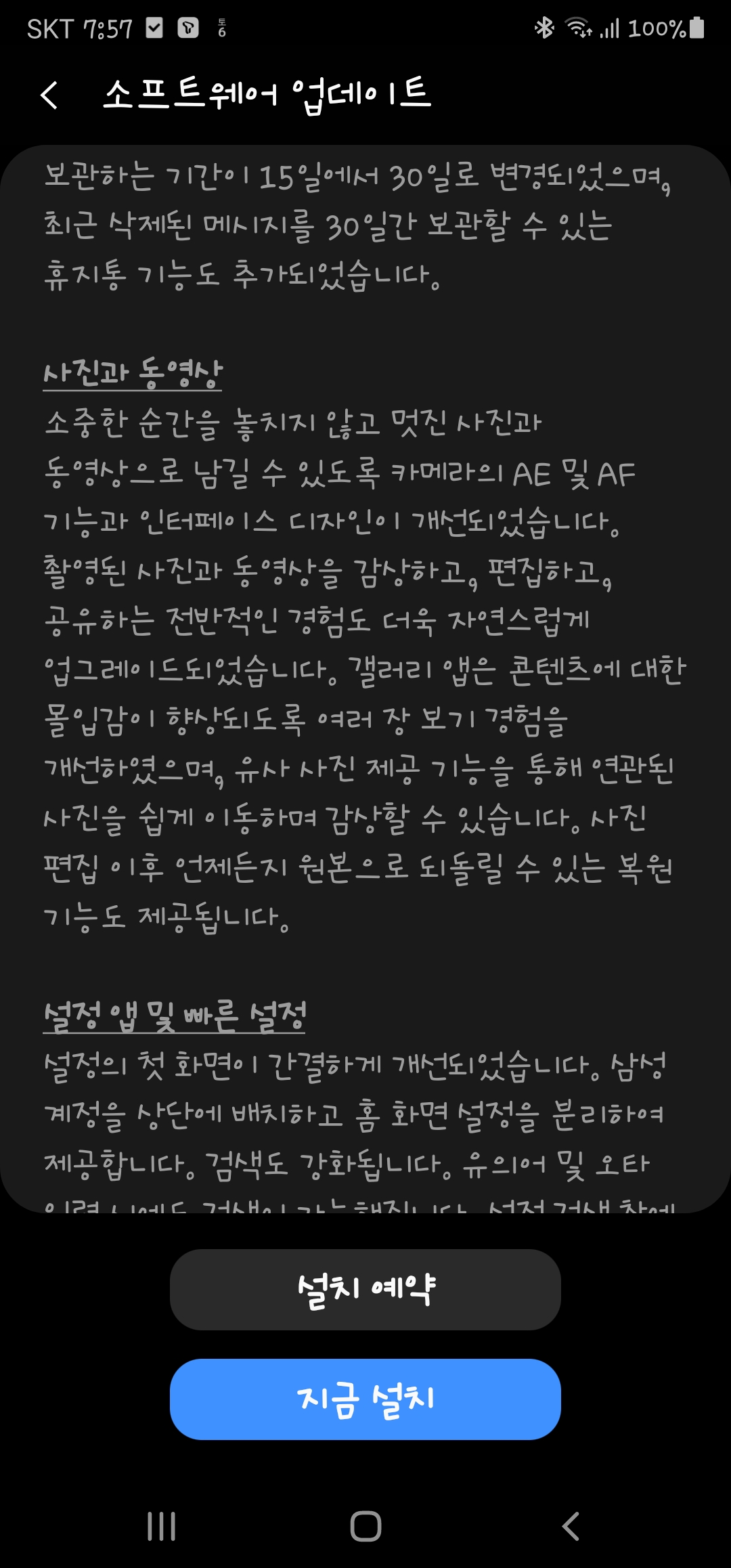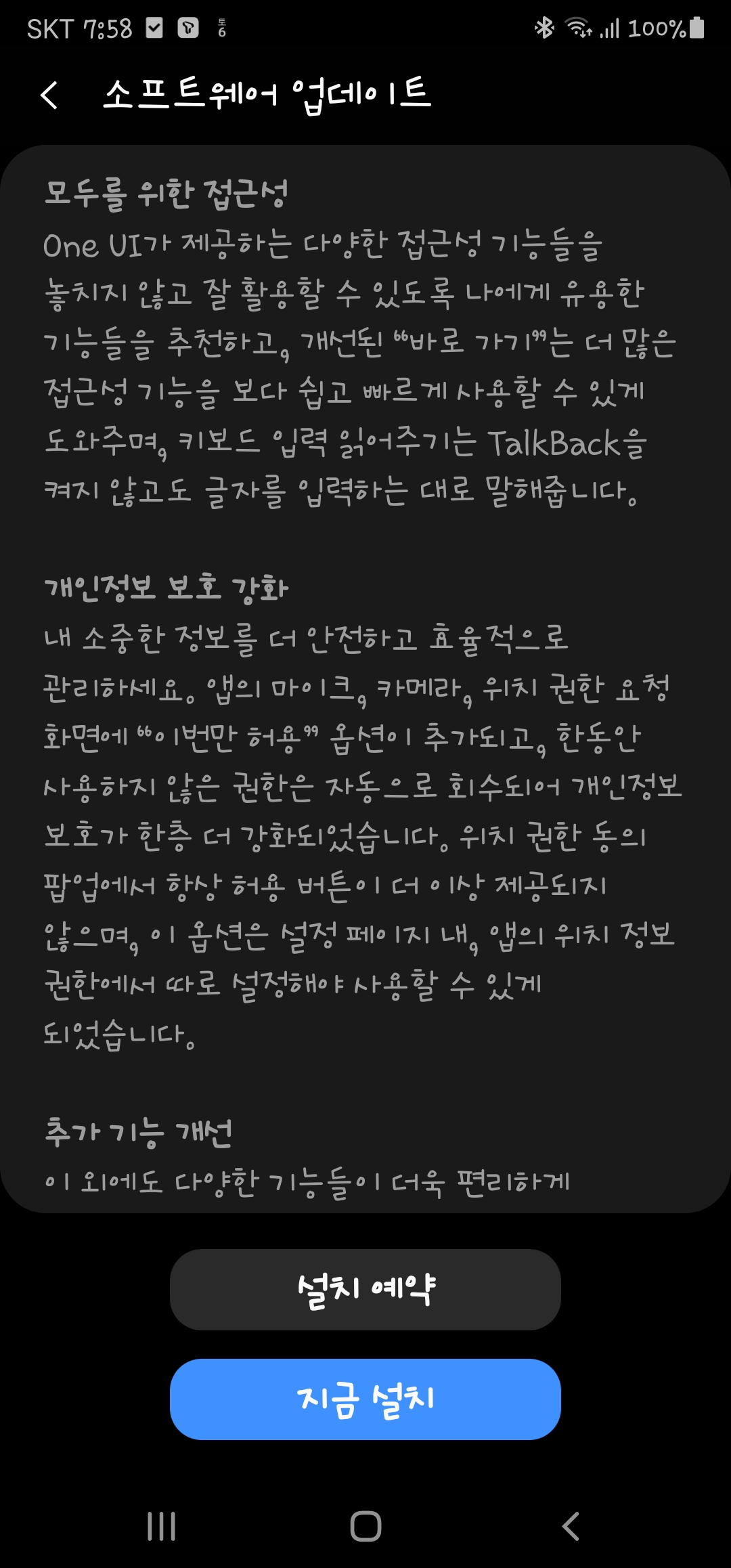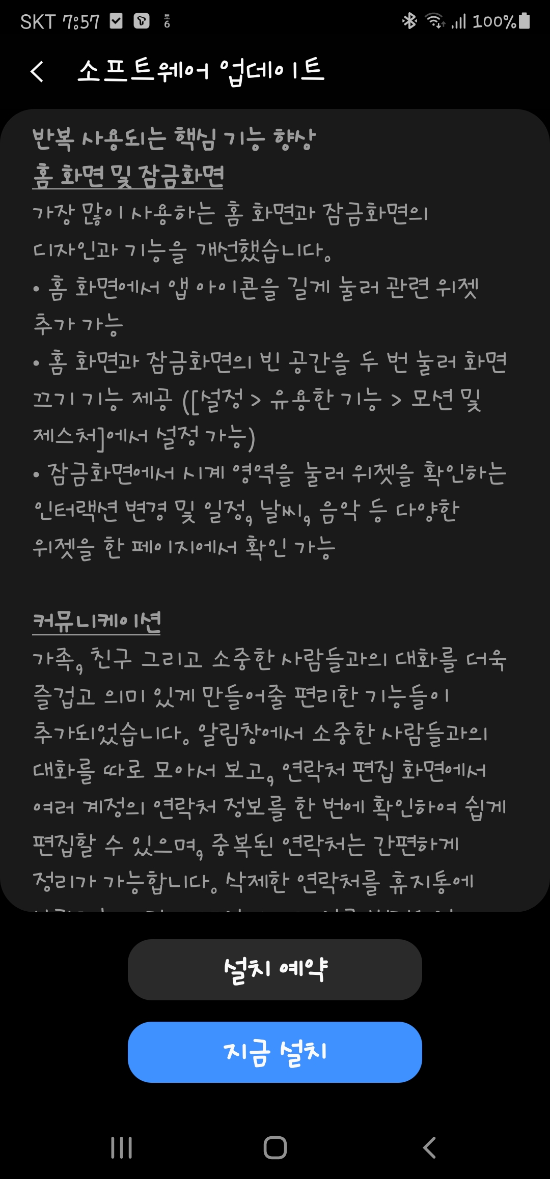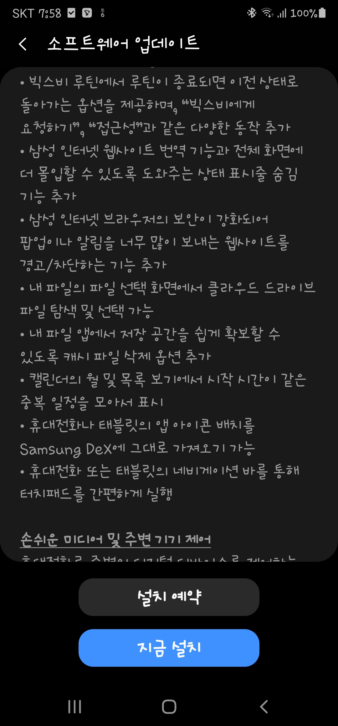 제법 시간이 걸려 소프트웨어 업데이트를 하고 보니, 이전과 달라진 부분들이 조금씩 보입니다. 적응하면서 즐겨보시길~~