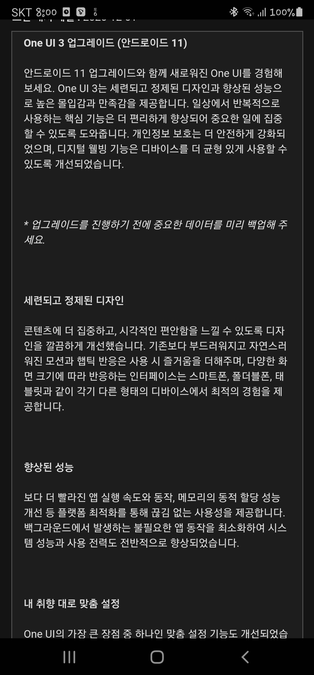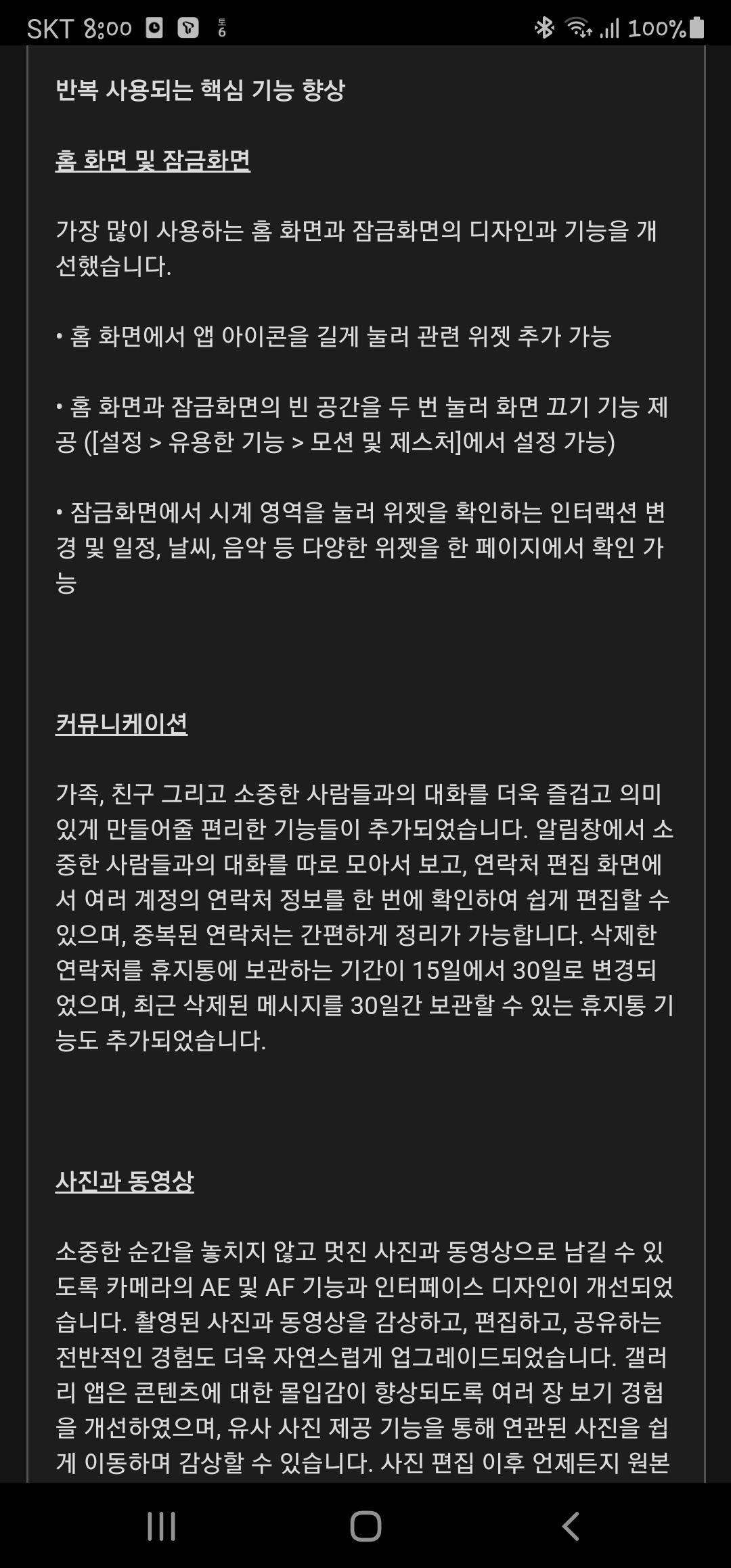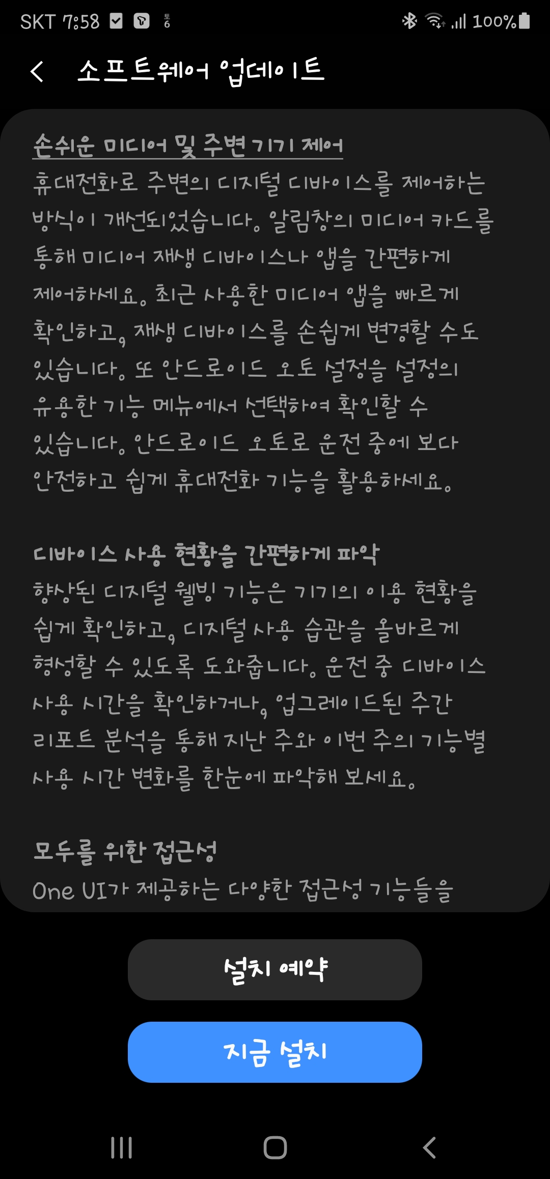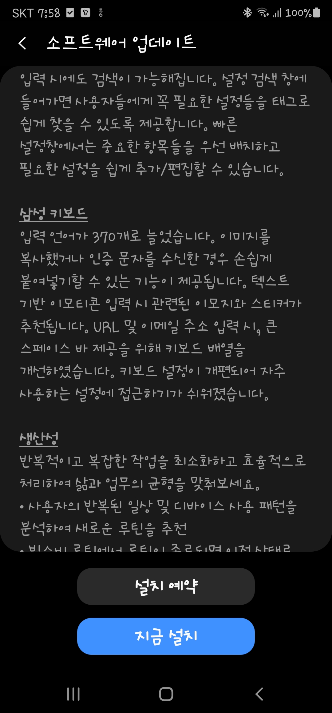 제법 시간이 걸려 소프트웨어 업데이트를 하고 보니, 이전과 달라진 부분들이 조금씩 보입니다. 적응하면서 즐겨보시길~~