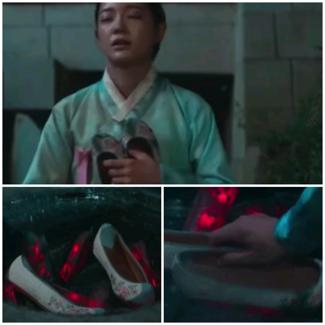 달이는 끌려가면서도 늘 신고 다니던 꽃신만큼은 어떻게든 잃지 않으려고 사력을 다하는데, 난투극 속에서도 작은 꽃신을 끝까지 품에 안고 버티는 모습은 달이가 얼마나 두려움 속에서도 강이를 믿고 있는지를 보여줍니다. 이를 뒤늦게 눈치챈 강이는 필사적으로 달이를 찾아 나서며, 결국 불길이 번지는 와중에 달이가 지키려 했던 그 꽃신을 손에 쥔 채로 달이 앞에 나타나 그대로 무너져내립니다. 달이를 지키기 위해 모든 위험을 감수했던 그의 몸은 이미 한계에 다다라 있었고, 그대로 달이의 품에 쓰러지는 모습에서 강이의 마음이 얼마나 깊고 절박한지 고스란히 전해집니다.