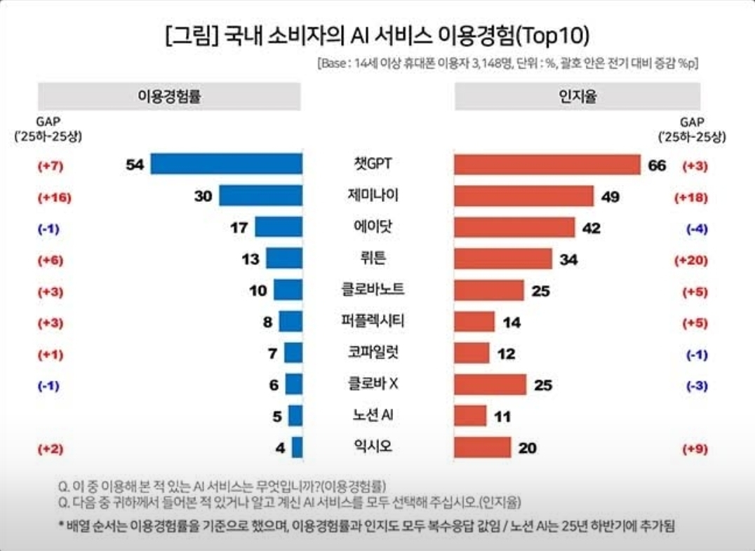 제미나이 반년 만에 이용경험률 16%p 상승 2025.12.18