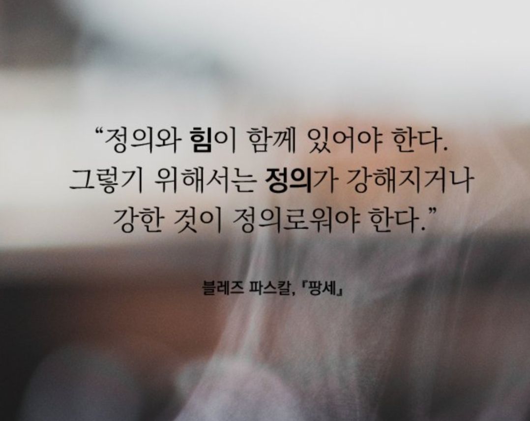📣 "우리는 정의로운 것을 강하게 만들거나, 강한 것을 정의롭게 만들어야 한다." — 파스칼