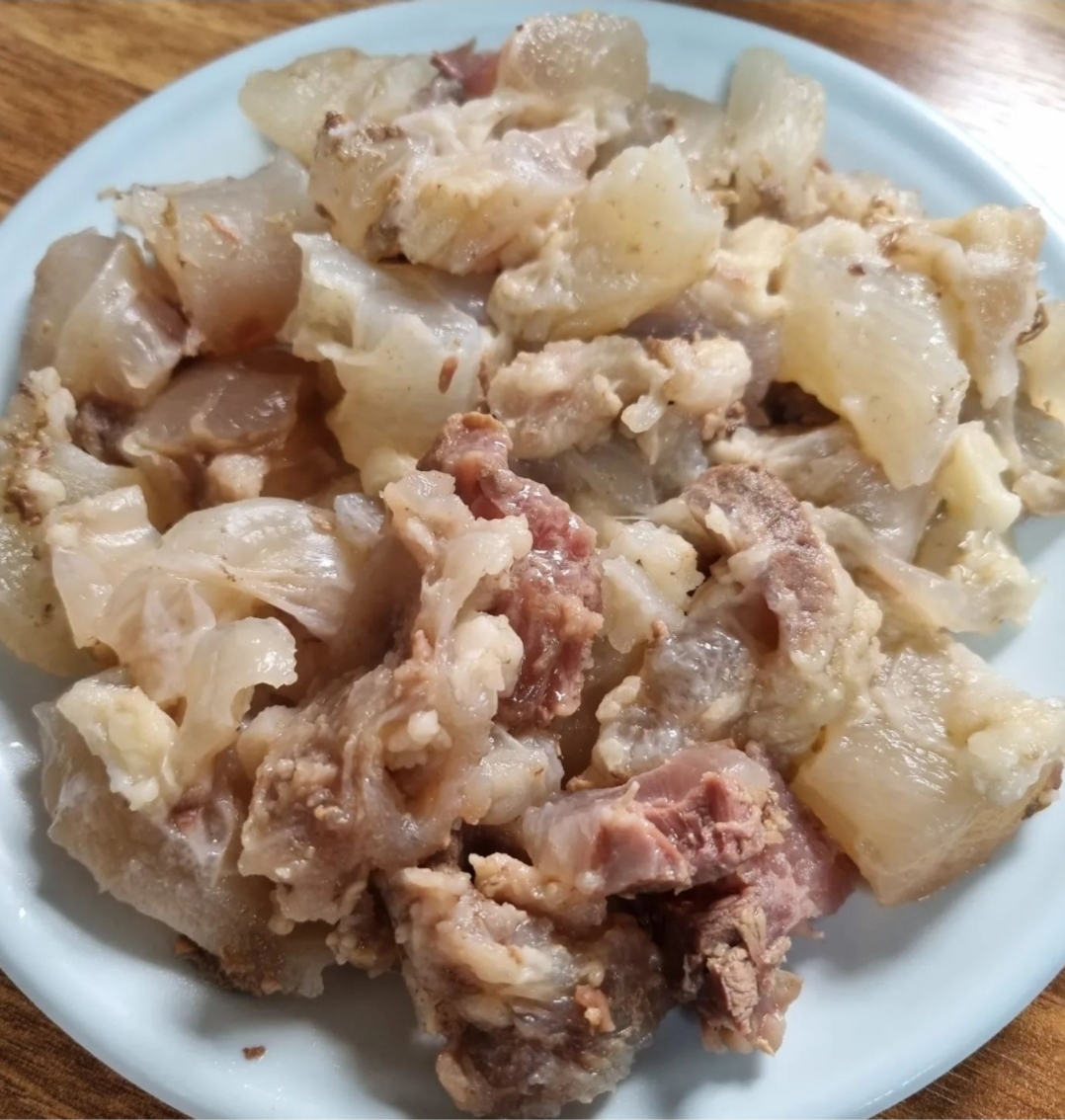 🏓 특징 : 뼈가 붙어있고, 삶으면 투명하고 뭉글뭉글한 점액질 덩어리 형태