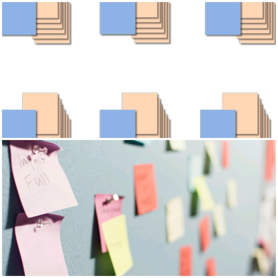 🔹️그룹핑(친화도 분류) : 카드들을 펼쳐놓고 연관성이 깊은 것끼리 모아 소그룹을 만듭니다. 이때 억지로 분류하지 않고 자연스럽게 묶이는 것을 찾습니다.