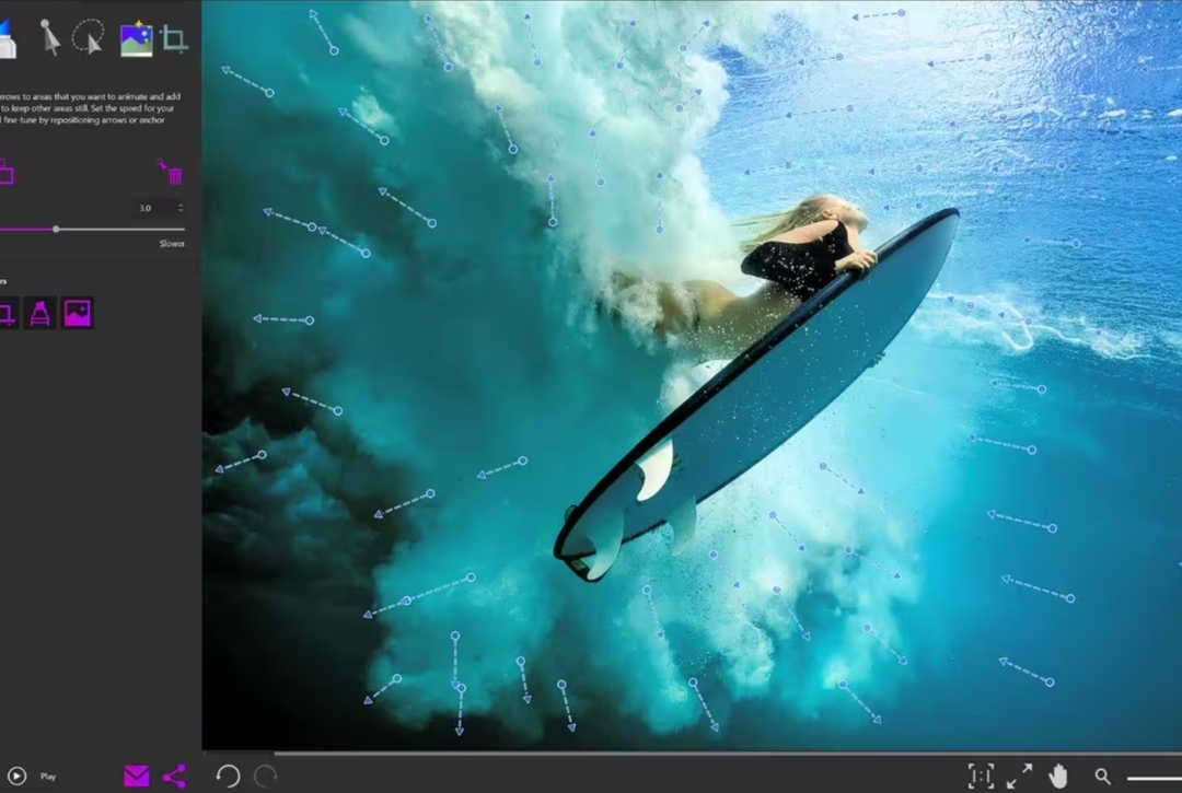 Corel에서 개발한 PhotoMirage는 정지된 이미지에 화살표를 그려 생동감 넘치는 애니메이션을 만드는 PC 전용 소프트웨어입니다.