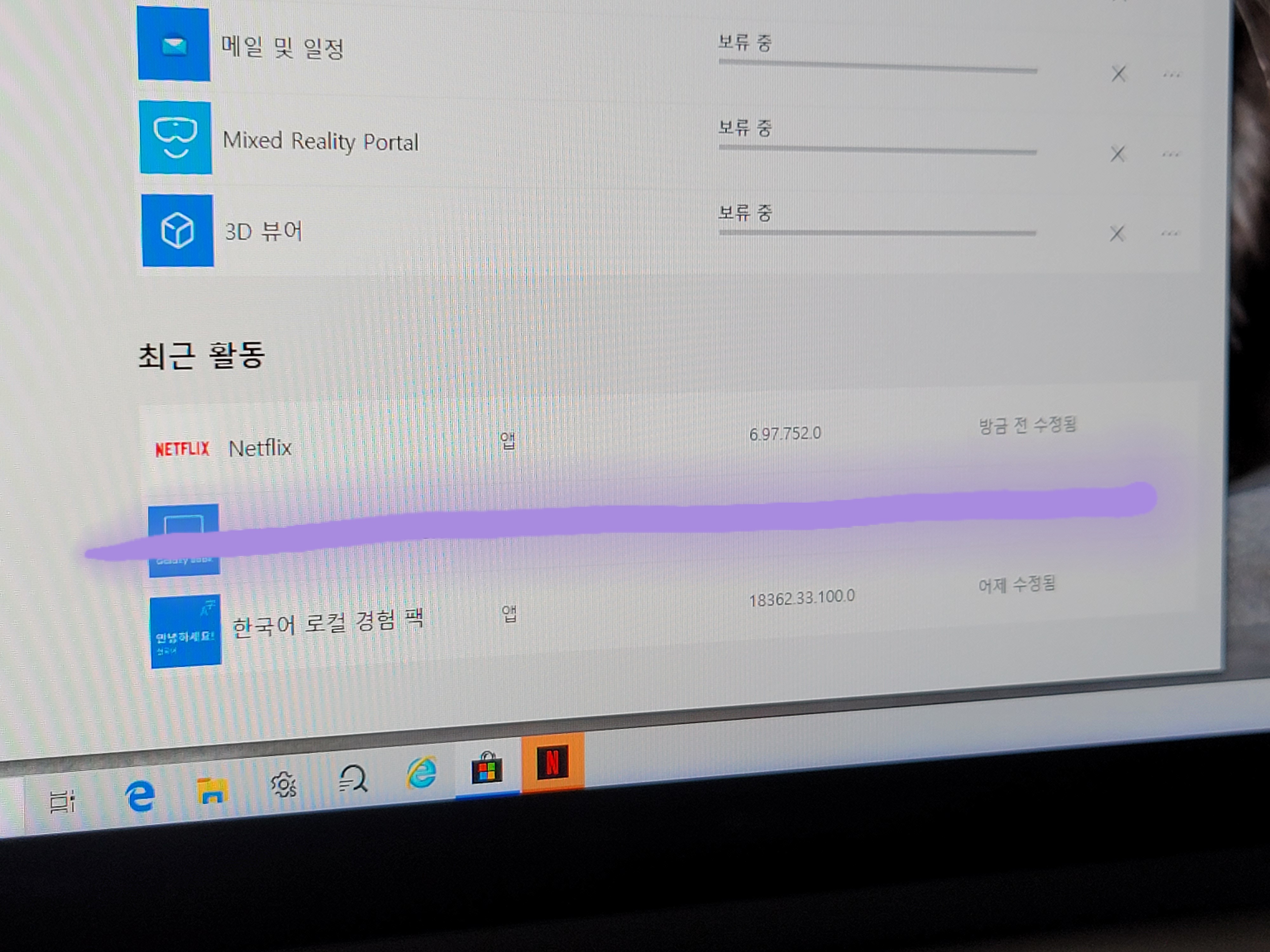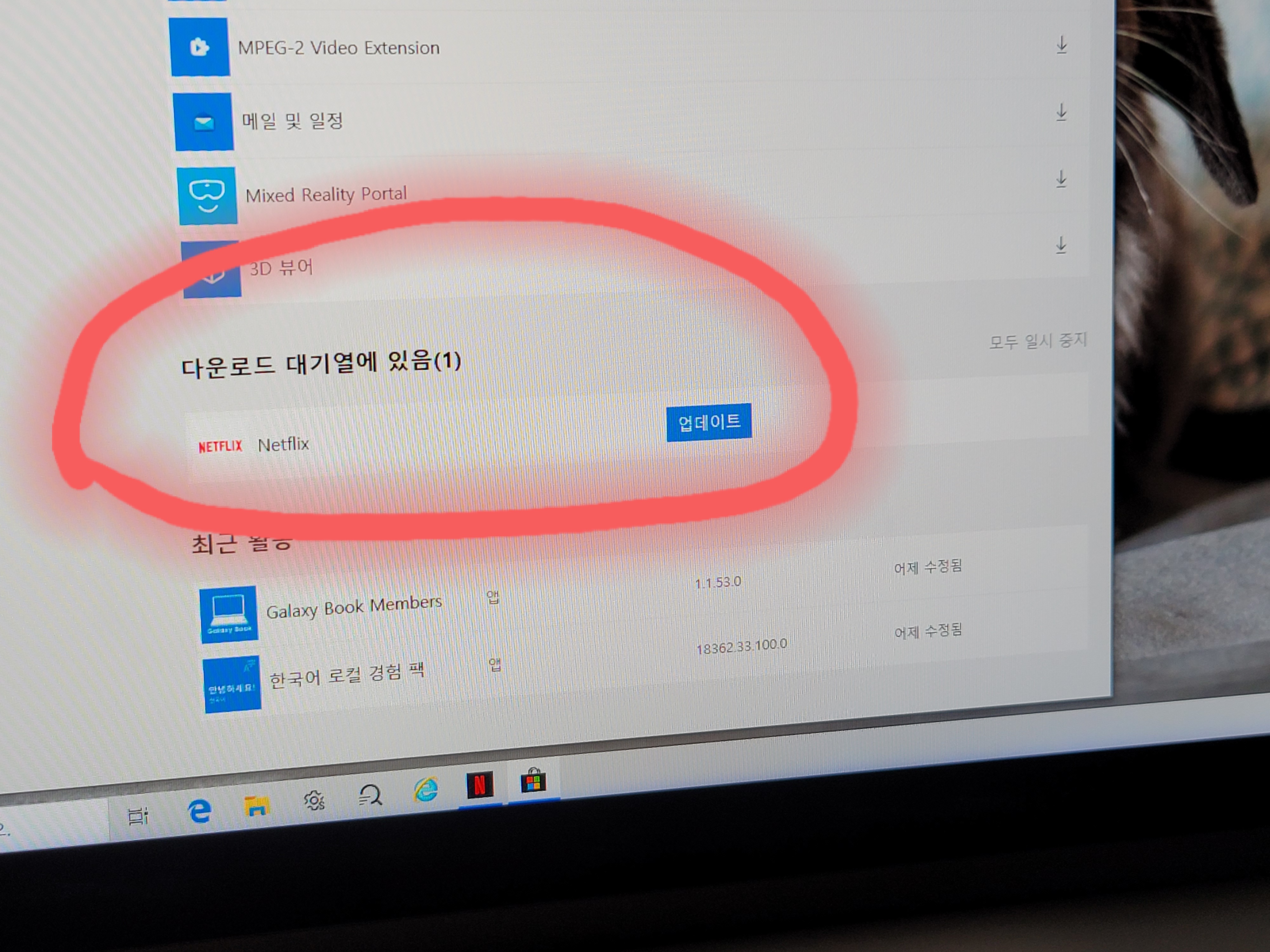 8. 아래쪽으로 내려가 보면 다운로드 대기열에 넷플렉스가 준비중인게 보입니다. 오른쪽 《업데이트》를 과감히 클릭📌