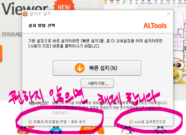 5. 당근 저는 클릭해제하고 패스합니다. 목적은 《알PDF》니까요👌