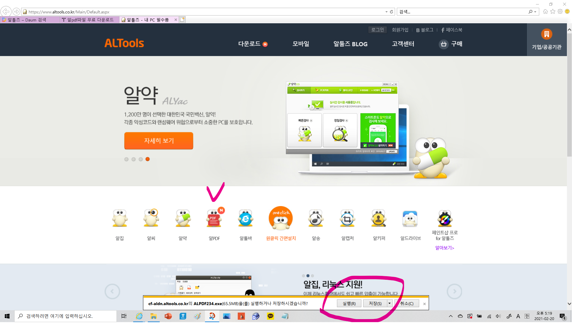 《알약 다운로드》를 원한다면 1번부터 다시 진행하시길~