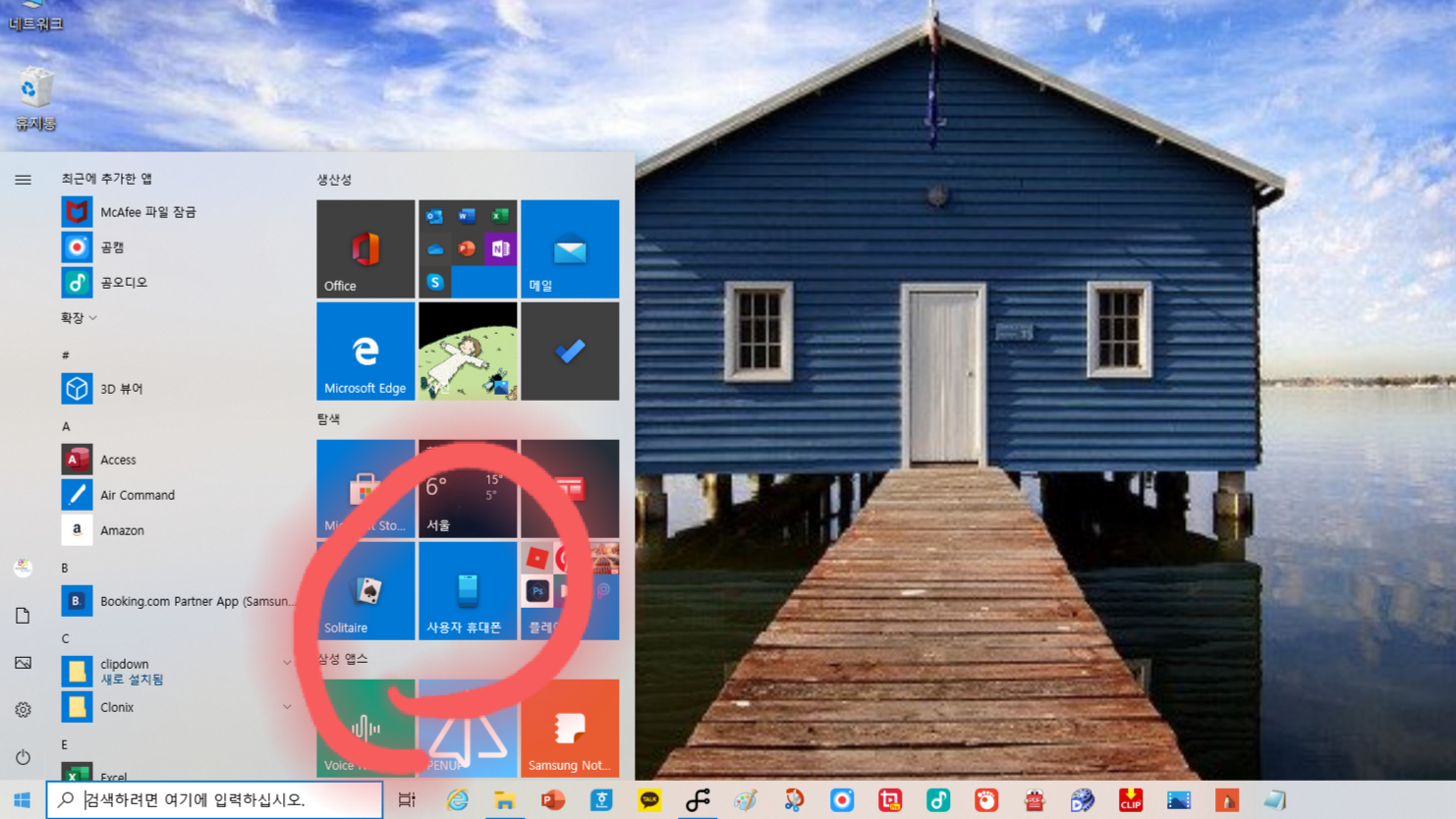 1. 갤럭시북 플렉스에서 왼쪽 아래 윈도우 아이콘을 눌러준 후《사용자 휴대폰》을 클릭합니다.