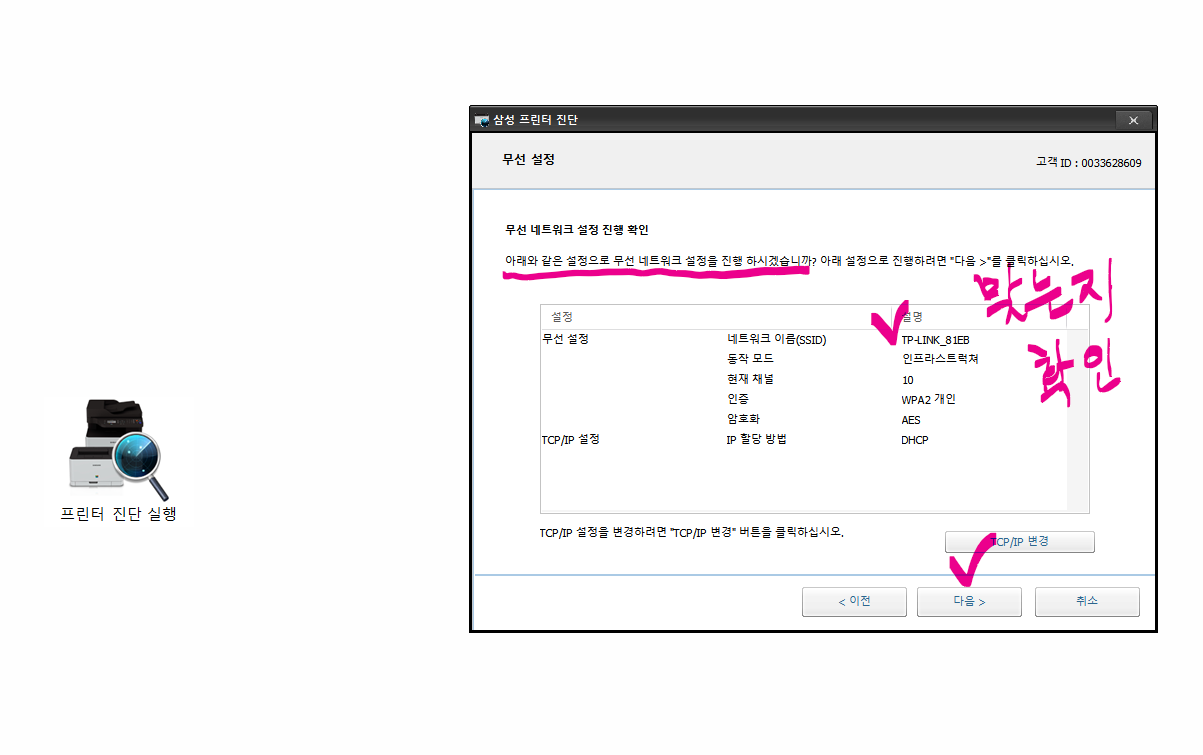 5. 여기까지하면 《준비 1단계》가 끝이 납니다. 그리고 원했던 《무선 설정》이 시작됩니다.