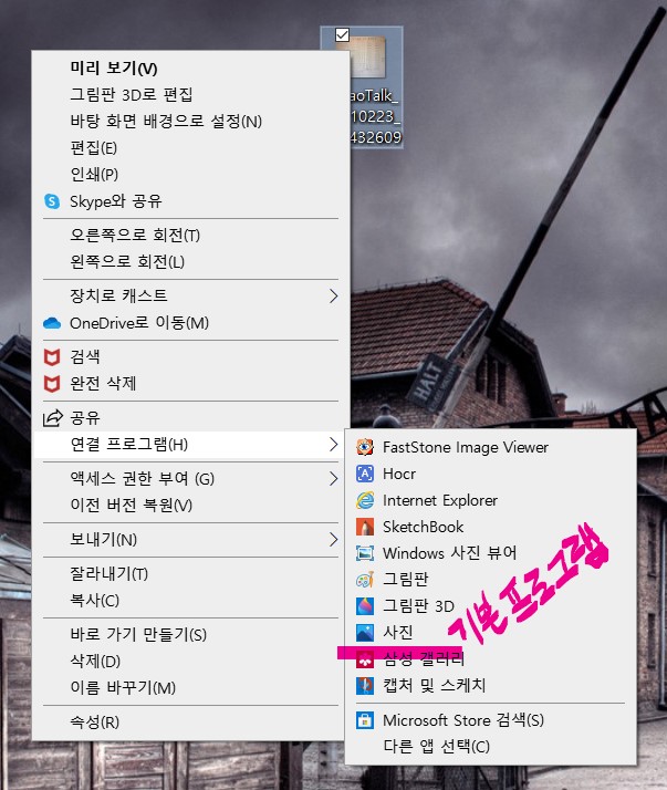 2. 연결 프로그램을 눌러서 자신의 갤럭시북 플렉스에 깔려있는 <기본 사진 뷰어> 프로그램을 선택합니다.