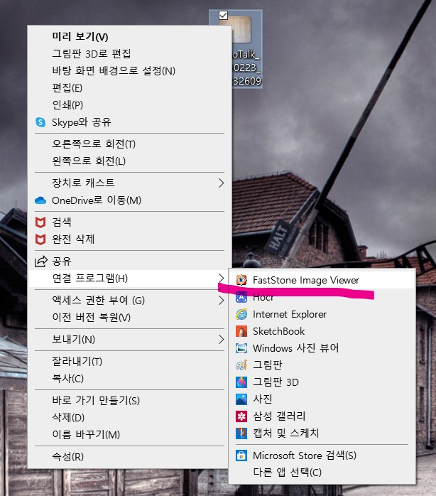 1. 그래서 다른 이미지 뷰어로 열기 위해 사진에 오른쪽 마우스 클릭합니다.