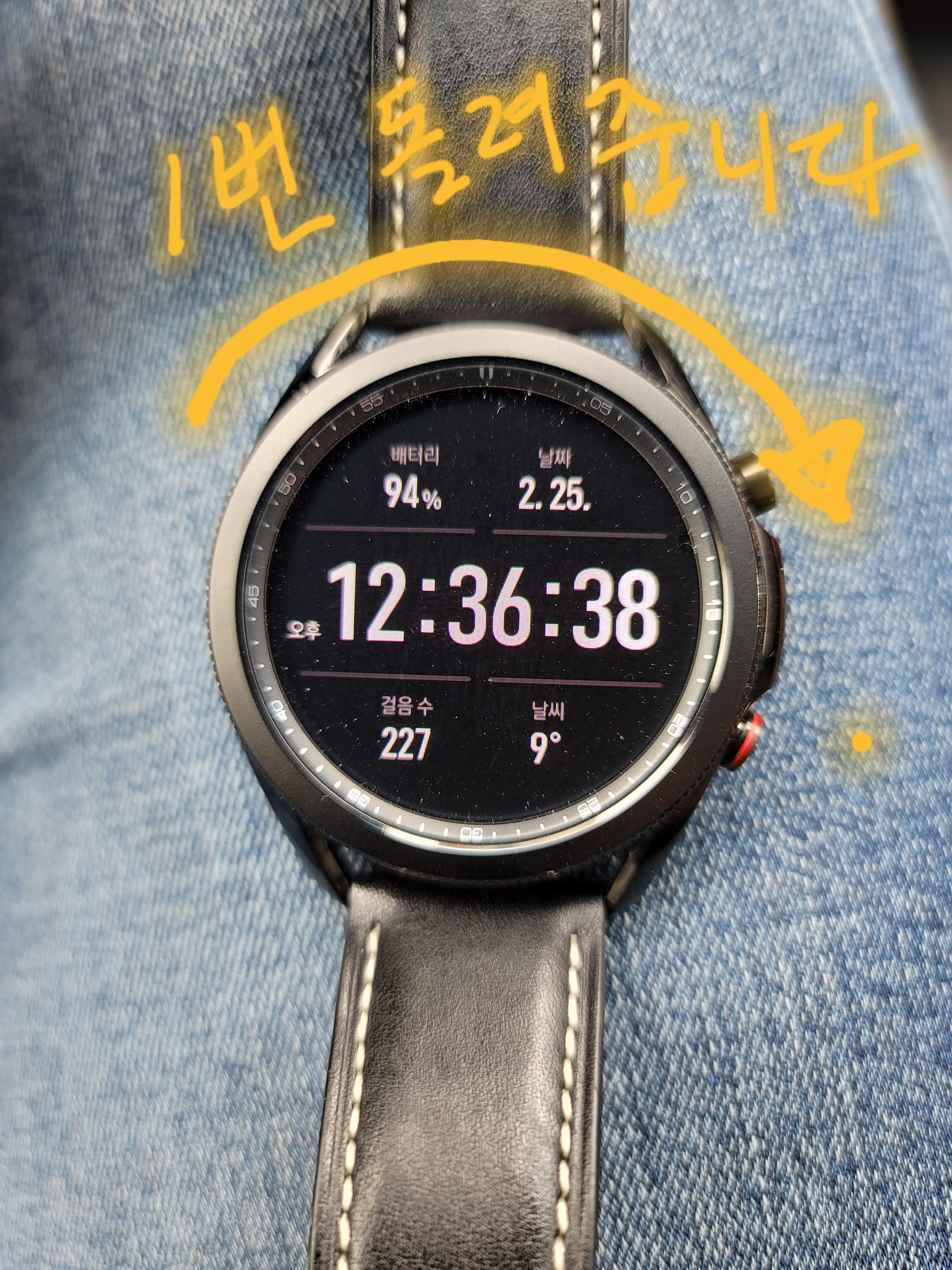 1. 갤럭시워치3를 켭니다.