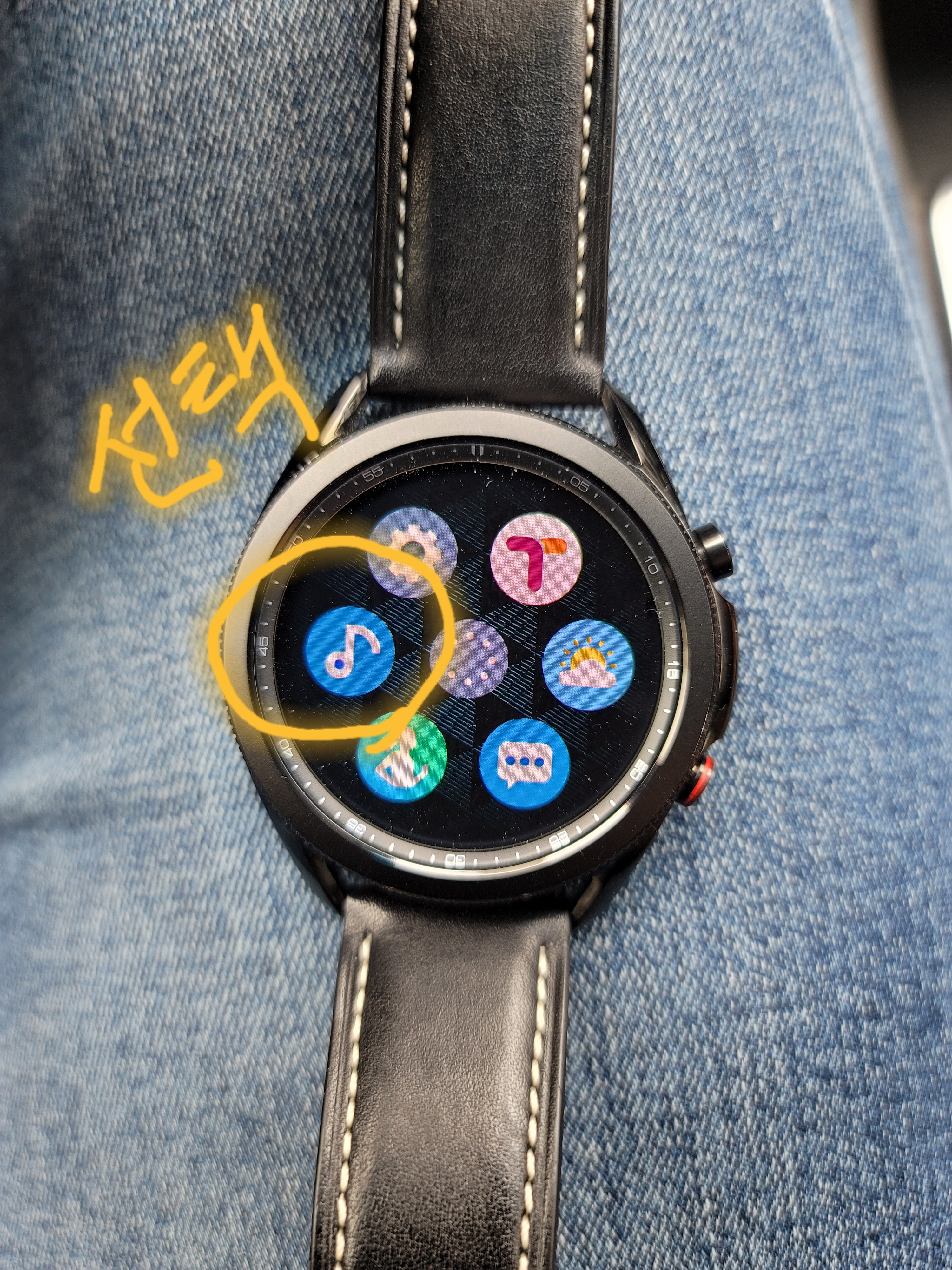 2. 갤럭시워치3의 배젤을 오른쪽으로 한번 돌려 줍니다.
