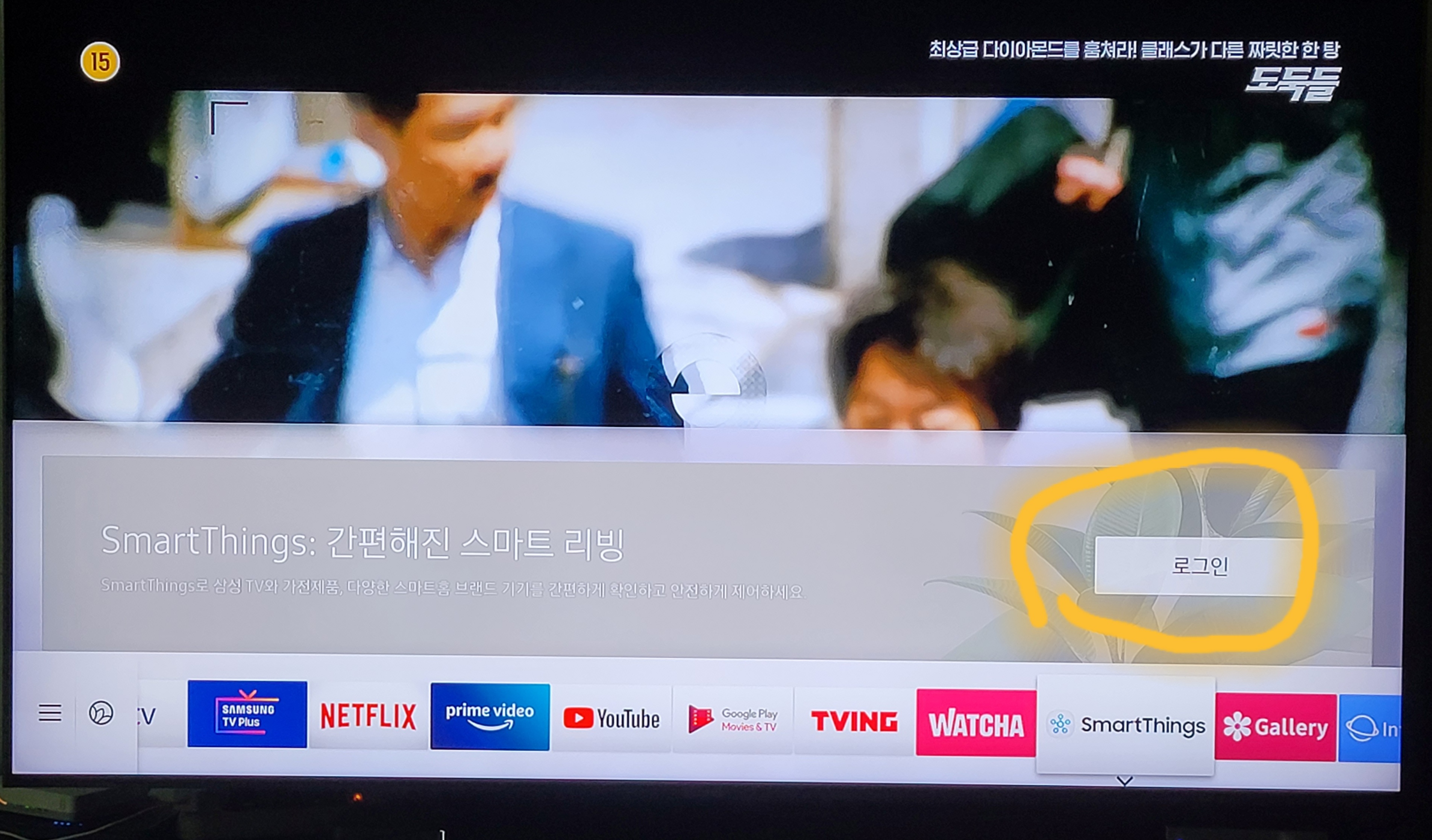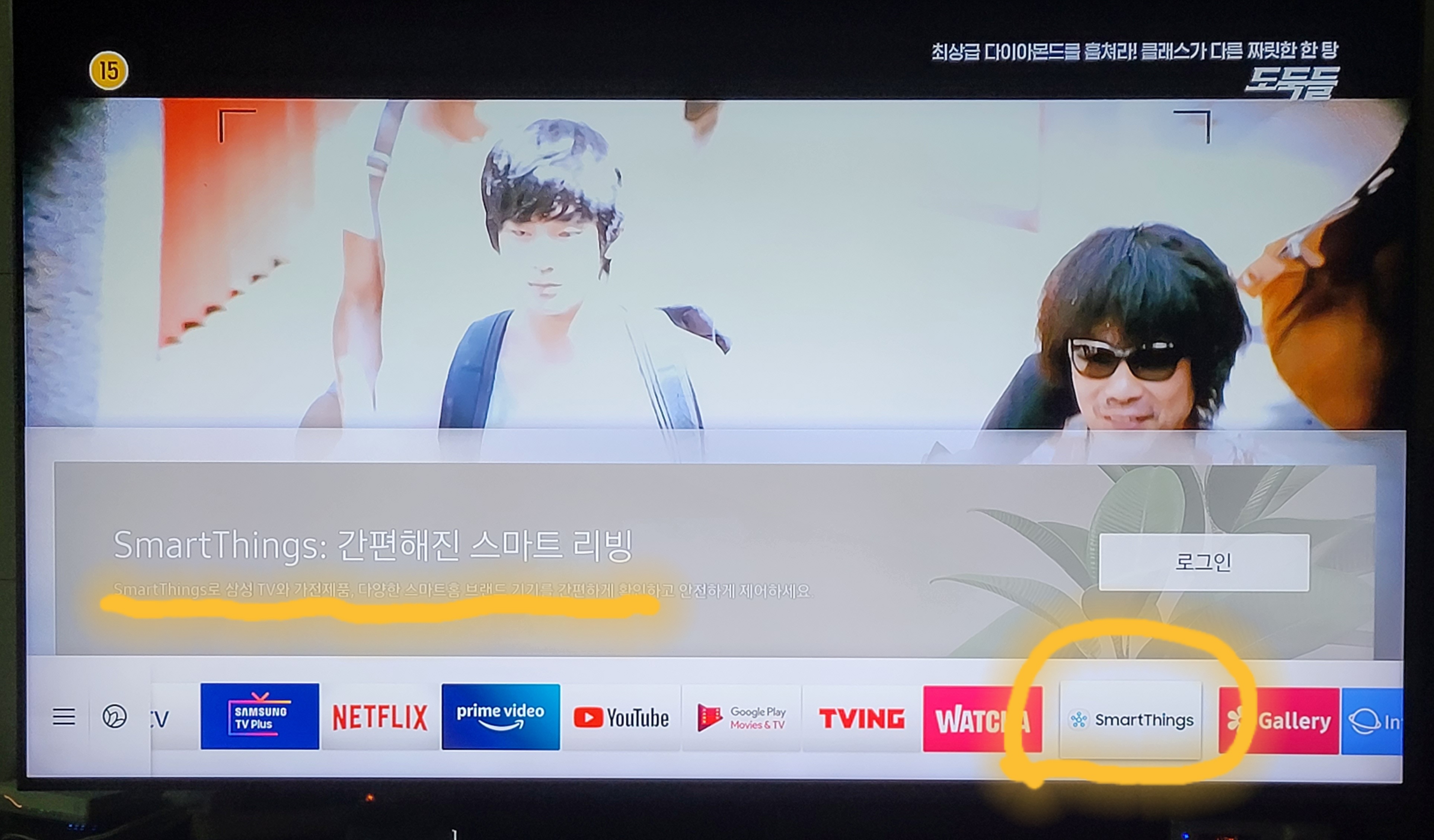 5. 이제는 스마트 TV로 갈 차례인데요. TV에서 《스마트싱스(SmartThings, 스마트 띵스)》를 선택합니다. 방법을 모르는 분들은 아래 링크 참고해 주시고요.