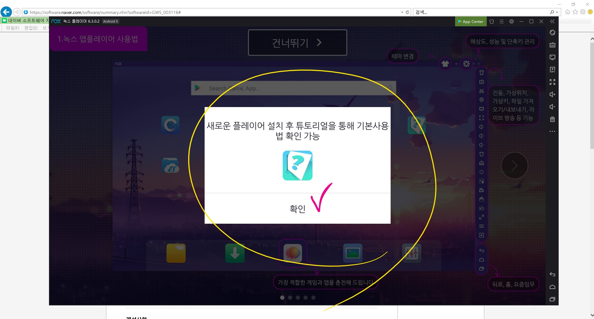 4. 녹스앱플레이어가 열고 《순서에 따라 진행》합니다.