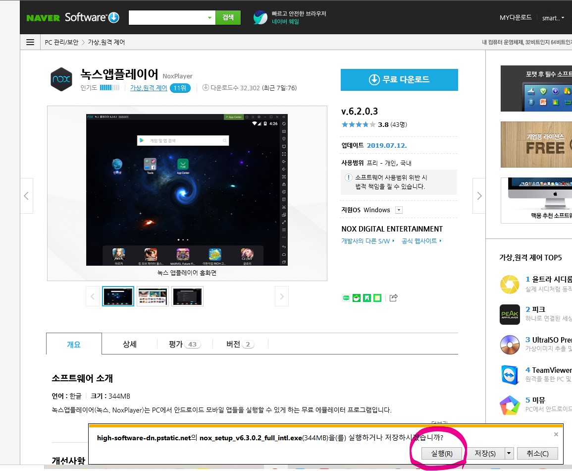 3. 《녹스앱플레이어》를 선택하고 《다운로드》 받습니다.