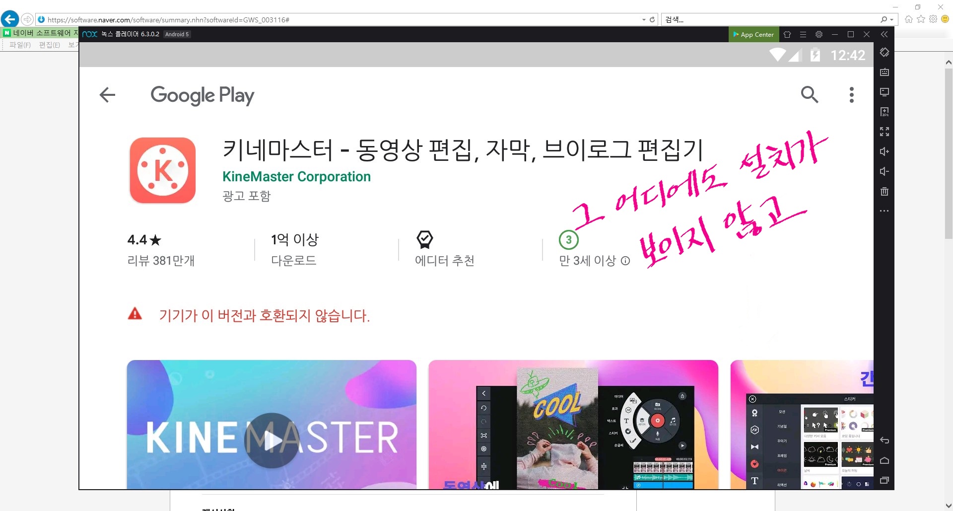 녹스 기기가 이 버전과 호환되지 않습니다, 키네마스터(KINEMASTER) PC 다운로드 한방에 해결하기 2