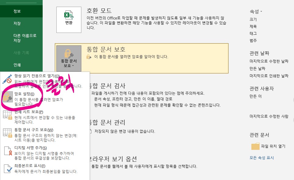 5. 팝업화면에서 《암호설정》을 눌러 줍니다.